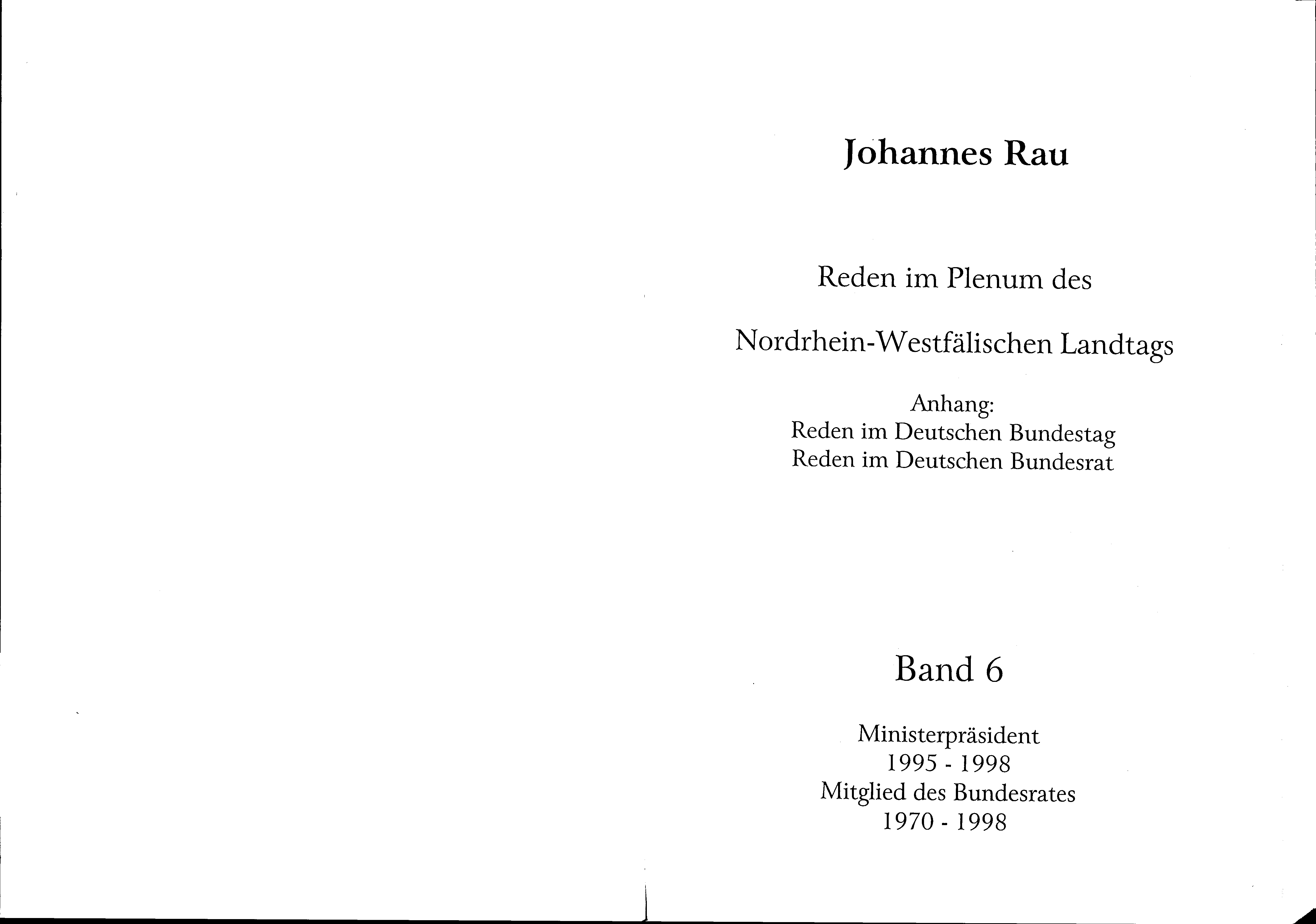 6 (1998) Ministerpräsident 1995-1998, Mitglied des Bundesrates 1970-1998; Anhang: Reden im Deutschen Bundestag, Reden im Deutschen Bundesrat / Johannes Rau