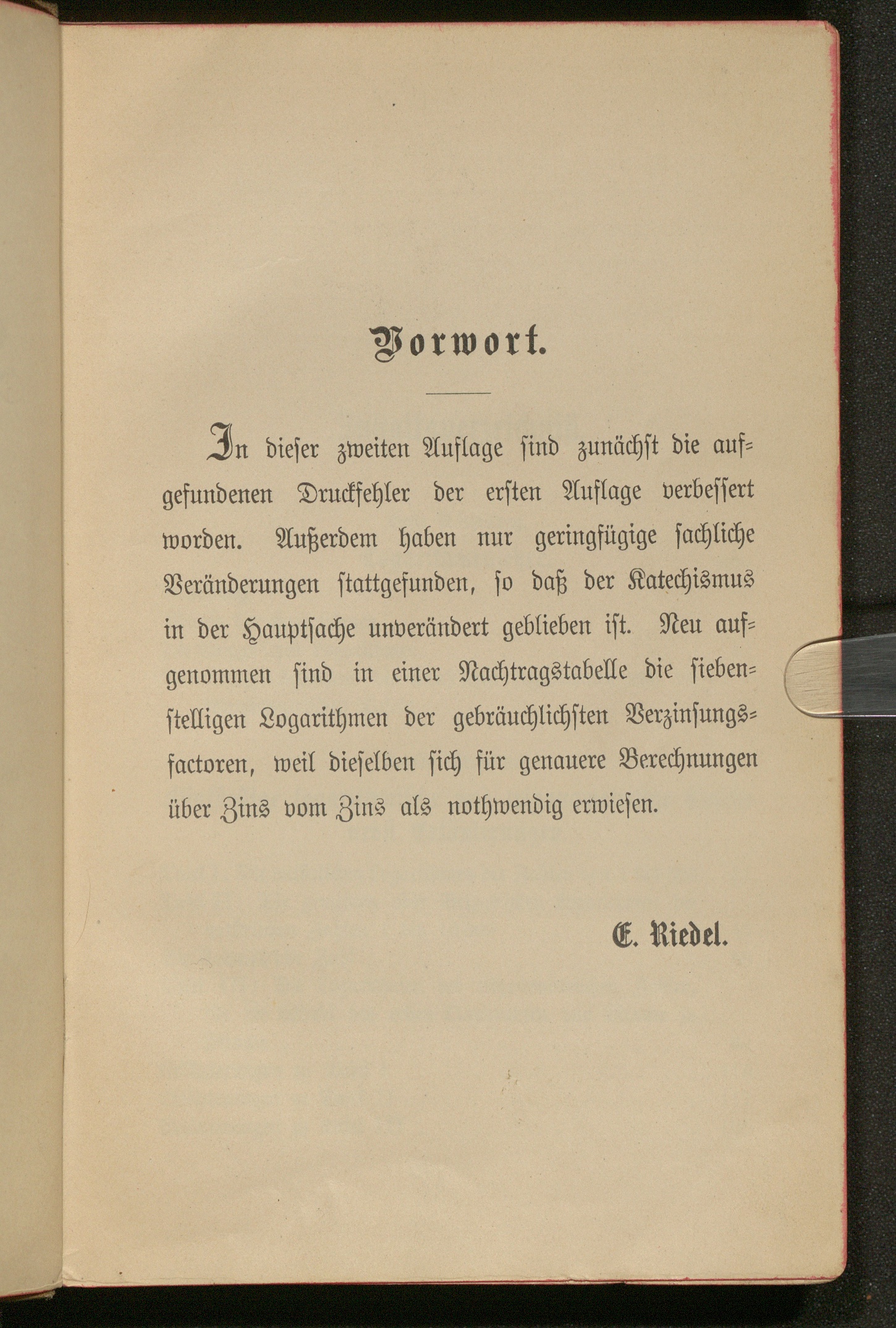 Nachtrag. Siebenstellige Logarithmen der gebräuchlichsten Verzinsungsfactoren