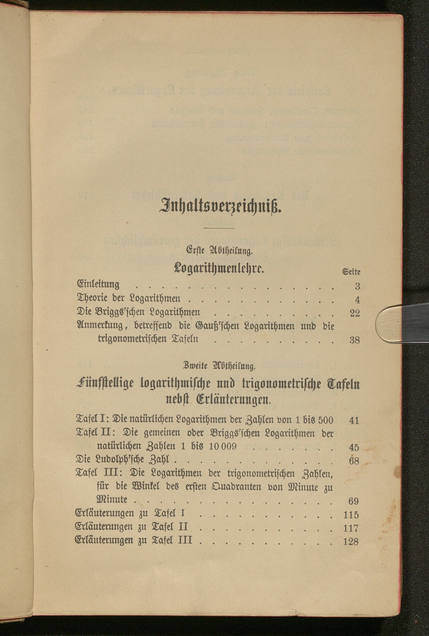 Zweite Abtheilung. Fünfstellige logarithmische und trigonometrische Tafeln nebst Erläuterungen