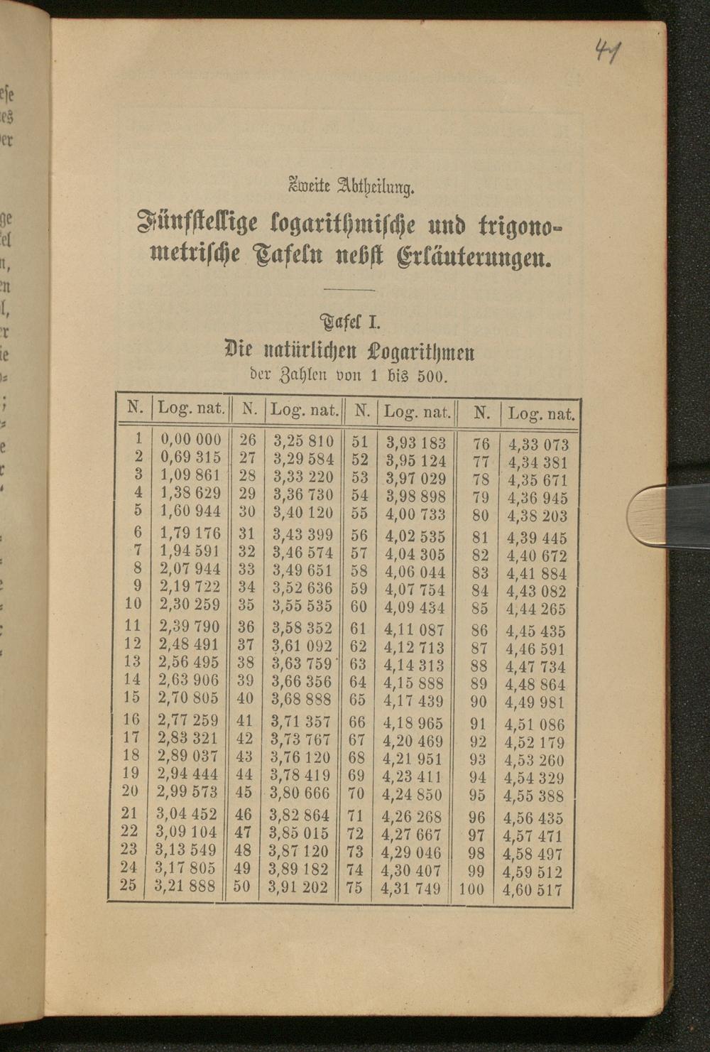 Zweite Abtheilung. Fünfstellige logarithmische und trigonometrische Tafeln nebst[...]