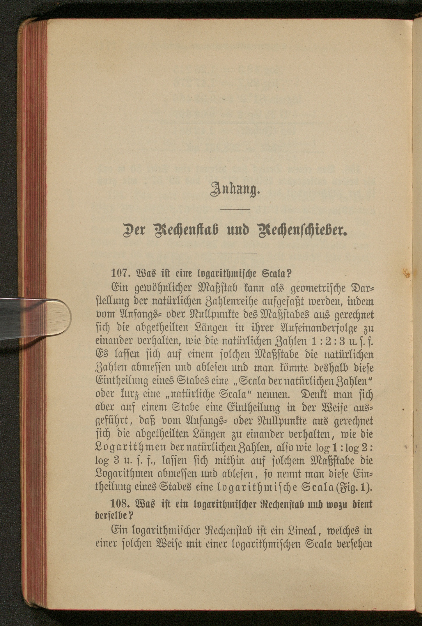 Anhang. Der Rechenstab und Rechenschieber