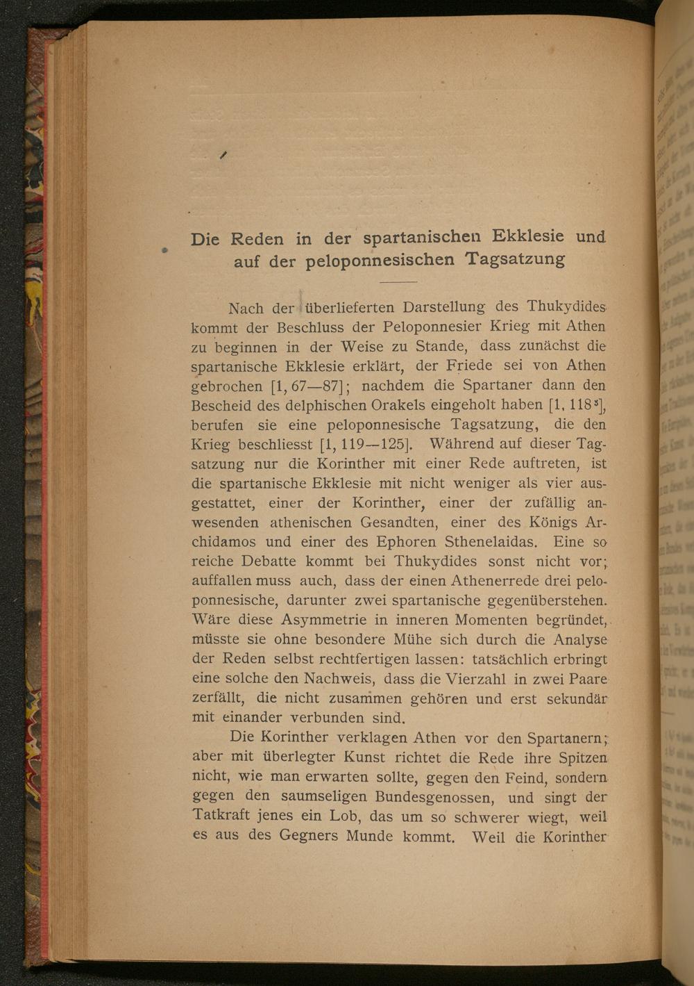 Die Reden in der spartanischen Ekklesie und auf der peleponnesischen Tagsatzung