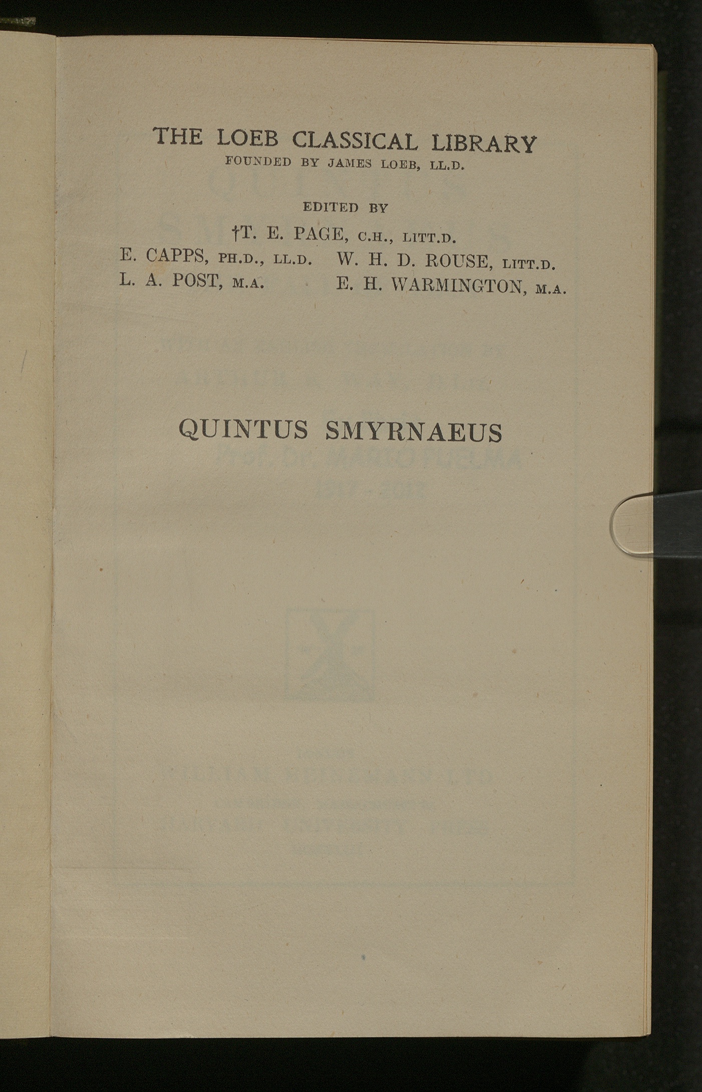 The fall of Troy / Quintus Smyrnaeus ; with an English translation by Arthur S. Way, D.Lit.