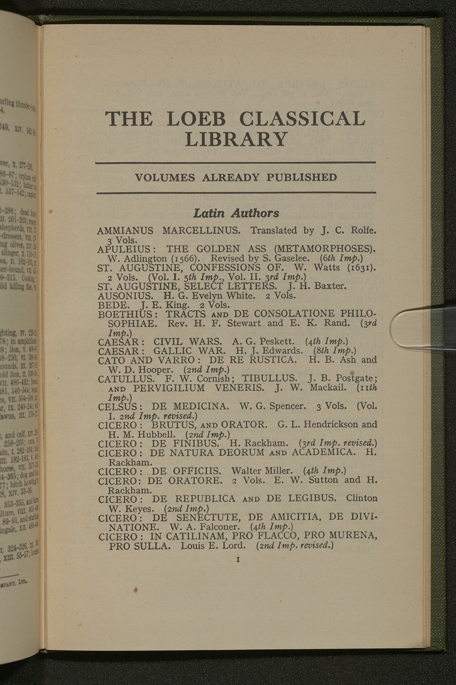 The Loeb Classical Library: volumes already published