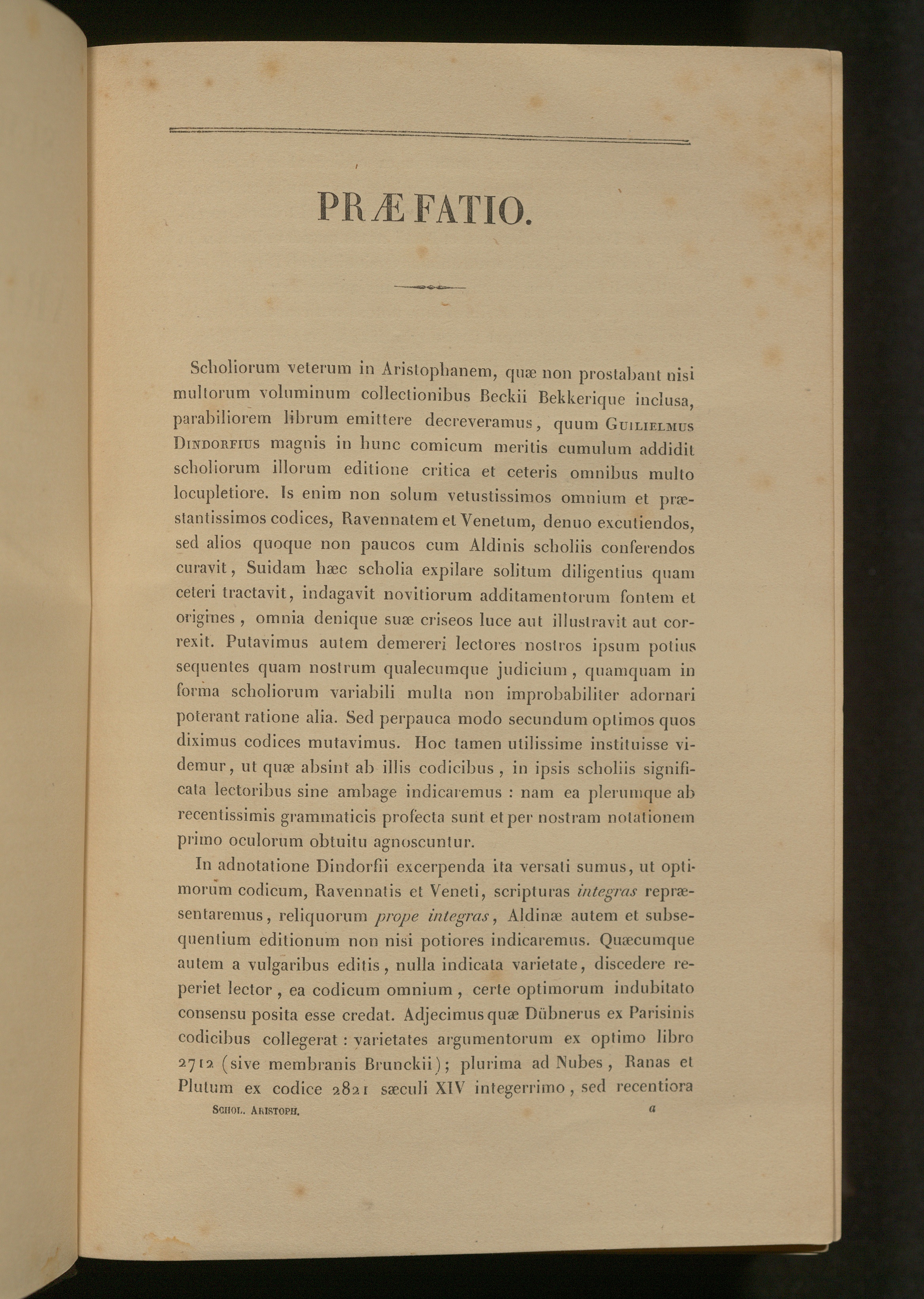 Scholia graeca in Aristophanem : cum prolegomenis grammaticorum : accedit index nominum et rerum ex Aristophane et scholiis nostra opera collectus, indices scriptorum et verborum in scholiis expositorum / varietate lectionis optimorum codicum integra, ceterorum selecta, annotatione criticorum item selecta, cui sua quaedam inseruit Fr. Dübner