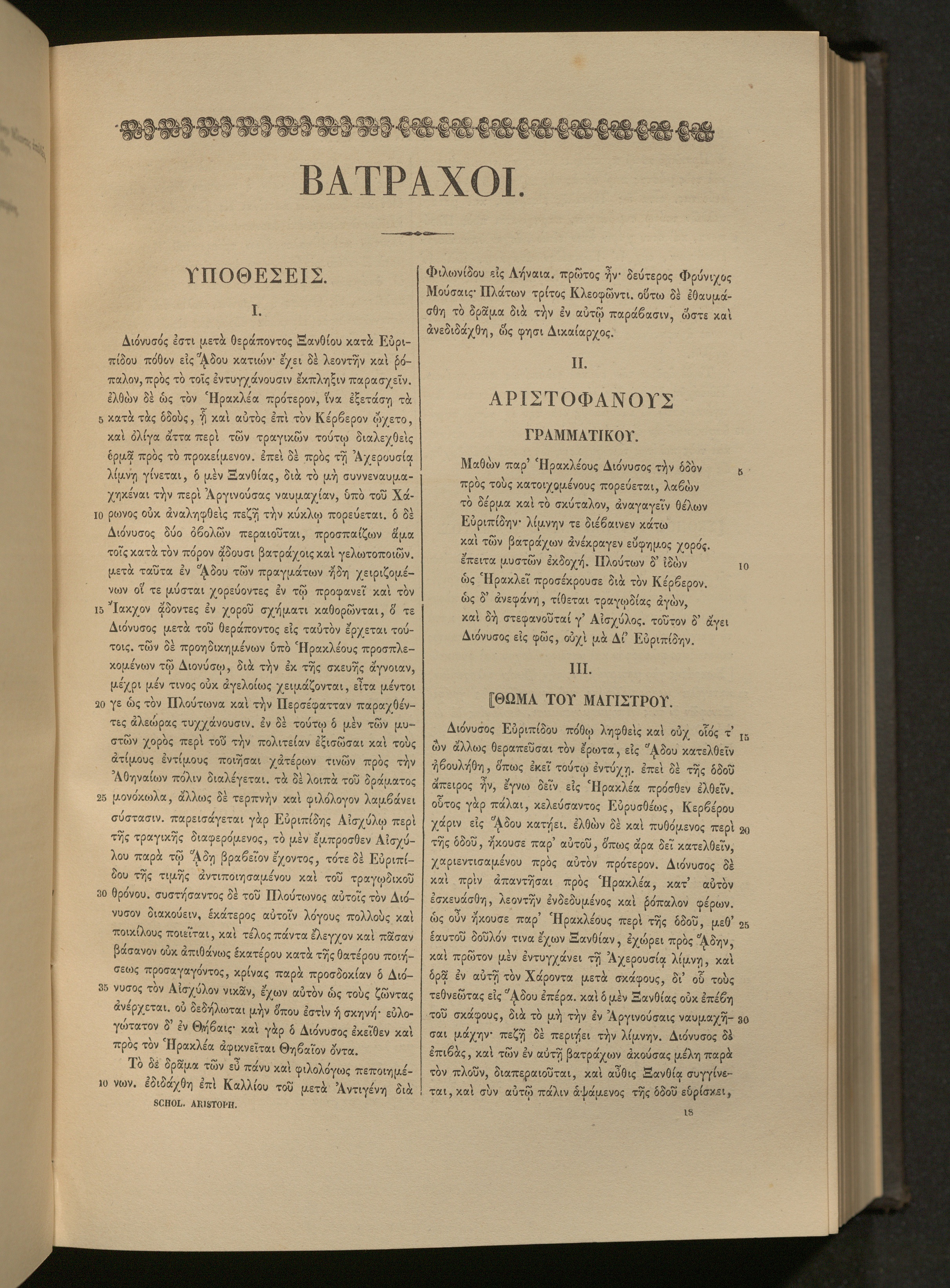 Scholia graeca in Aristophanem : cum prolegomenis grammaticorum : accedit index nominum et rerum ex Aristophane et scholiis nostra opera collectus, indices scriptorum et verborum in scholiis expositorum / varietate lectionis optimorum codicum integra, ceterorum selecta, annotatione criticorum item selecta, cui sua quaedam inseruit Fr. Dübner