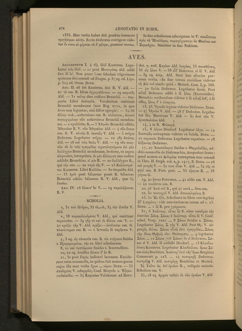Scholia graeca in Aristophanem : cum prolegomenis grammaticorum : accedit index nominum et rerum ex Aristophane et scholiis nostra opera collectus, indices scriptorum et verborum in scholiis expositorum / varietate lectionis optimorum codicum integra, ceterorum selecta, annotatione criticorum item selecta, cui sua quaedam inseruit Fr. Dübner