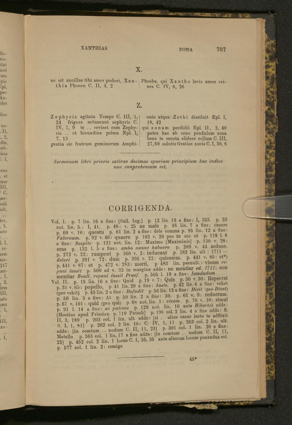Index in Horatium / Caroli Zangemeisteri