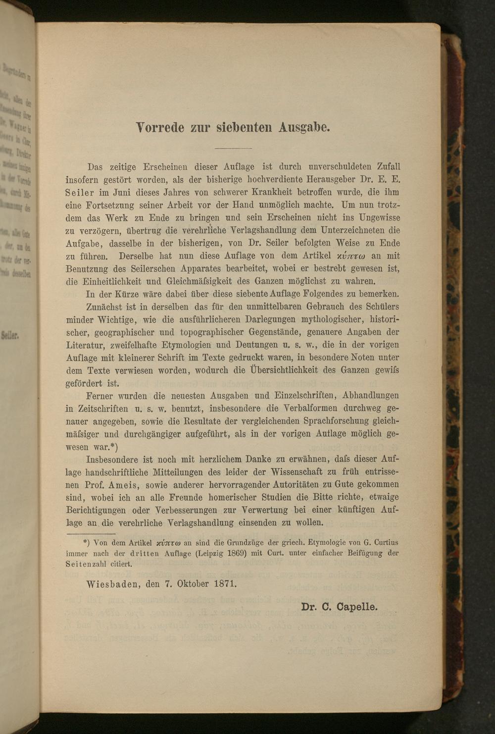 Vollständiges Wörterbuch über die Gedichte des Homeros und der Homeriden : zum Schul- und Privat-Gebrauch / nach dem früheren Seiler'schen Homer-Wörterbuch neu bearbeitet von Professor Dr. C. Capelle