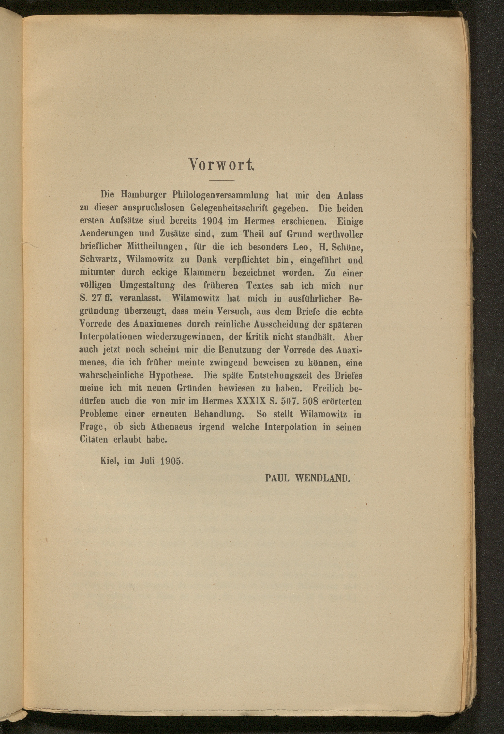Anaximenes von Lampsakos : Studien zur ältesten Geschichte der Rhetorik : Festschrift für die XLVIII. Versammlung Deutscher Philologen und Schulmänner in Hamburg / von Paul Wendland