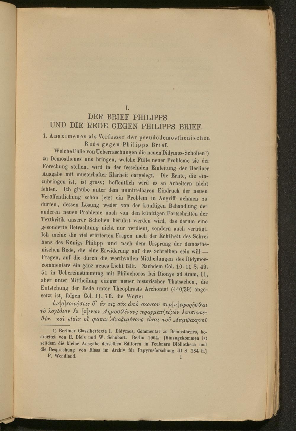 I. Der Brief Philipps und die Rede gegen Philipps Brief