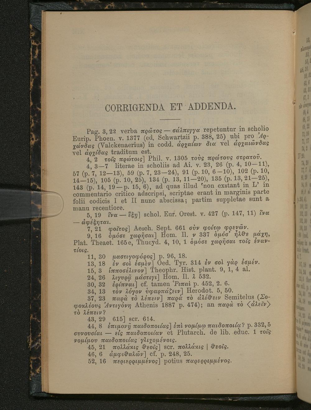 III. Index emendationum editoris