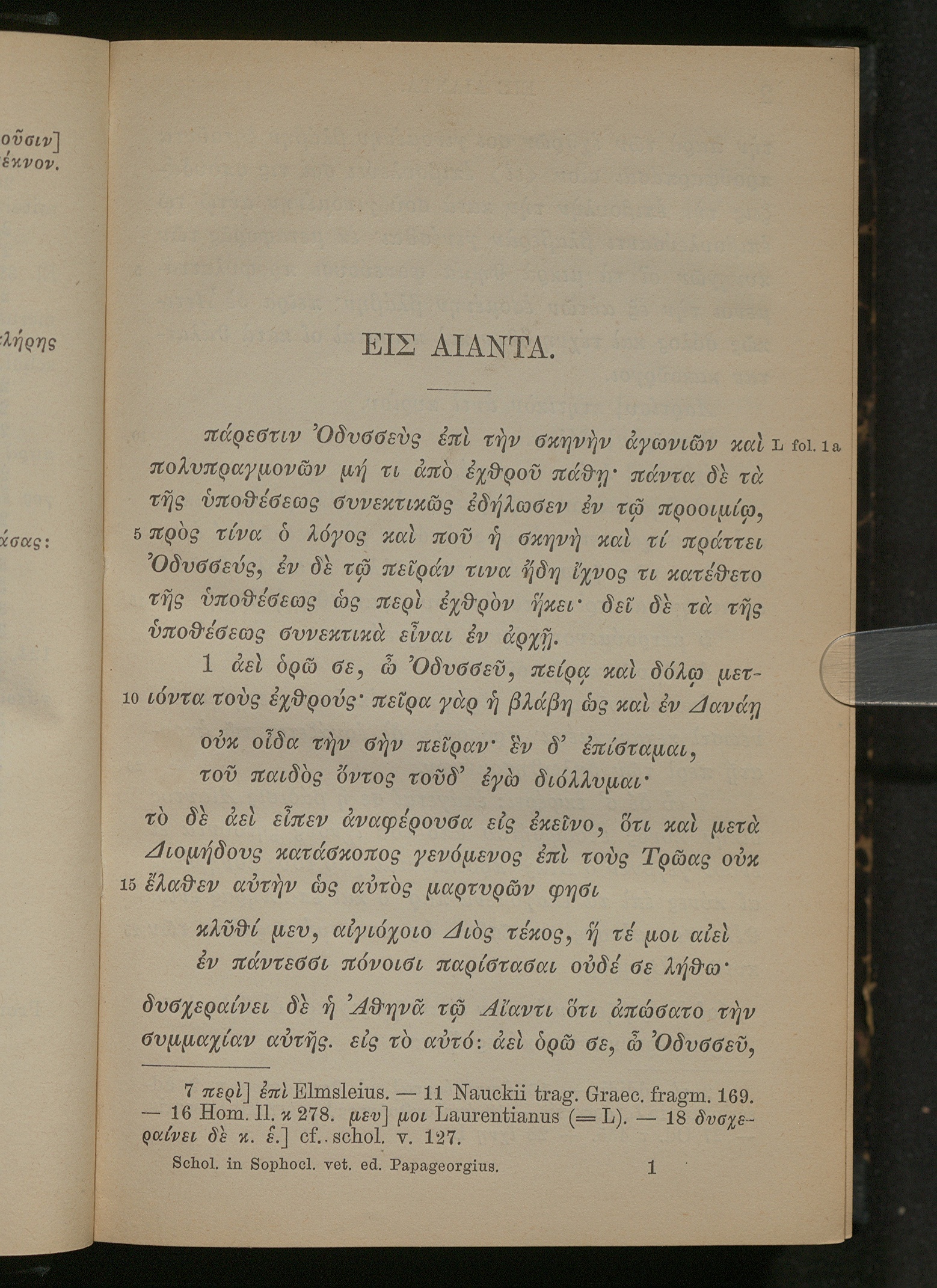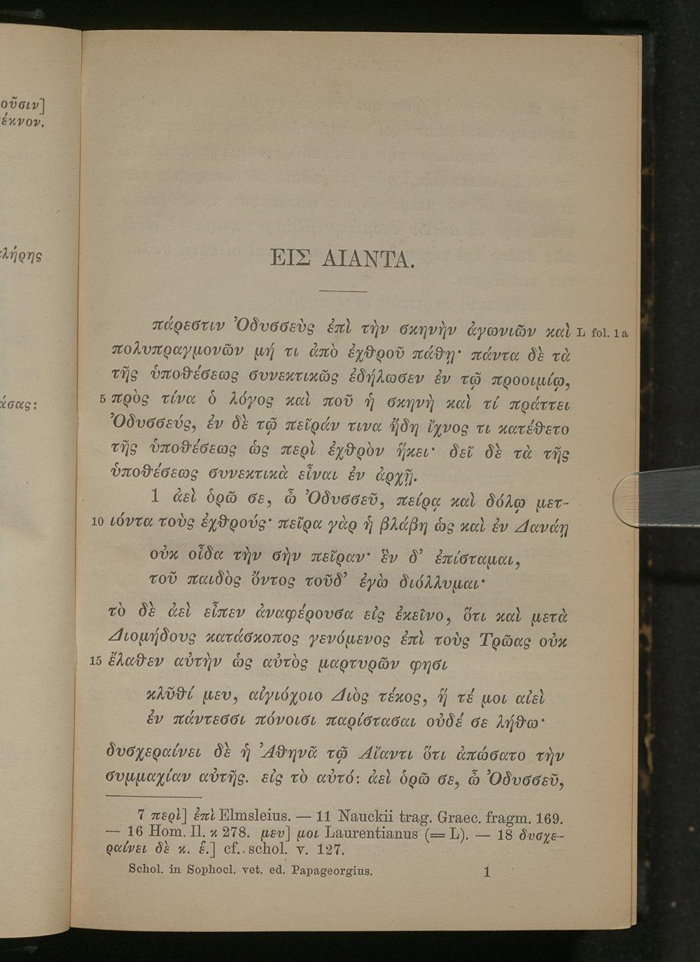 Scholia in Sophoclis tragoedias vetera / e Codice Laurentiano denuo collato edidit, commentario critico instruxit, indices adiecit Petrus N. Papageorgius