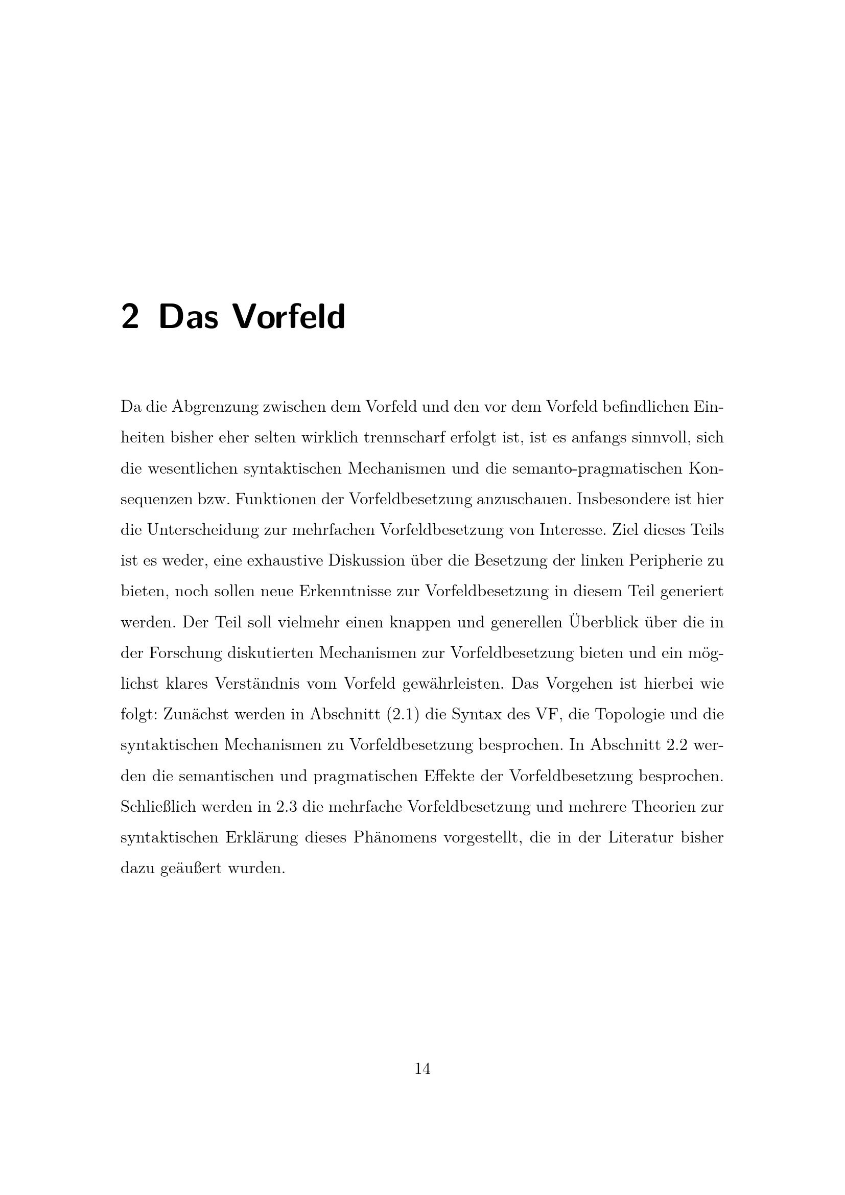 Formale und funktionale Aspekte des Vor-Vorfeldes