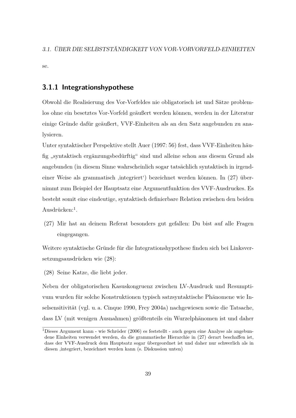 Über die Selbstständigkeit von Vor-Vorvorfeld-Einheiten