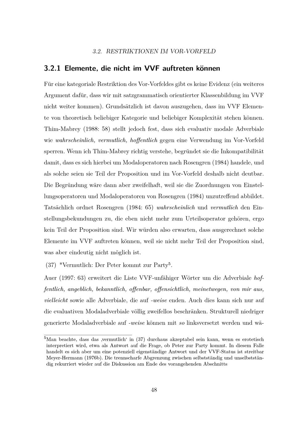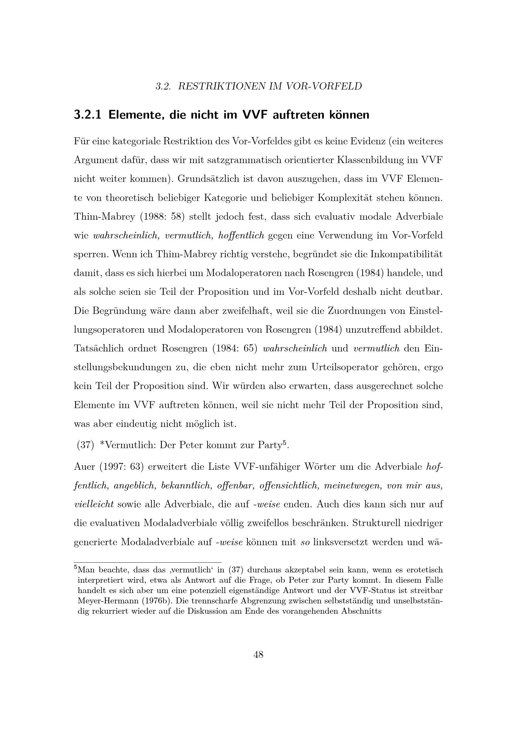 Formale und funktionale Aspekte des Vor-Vorfeldes