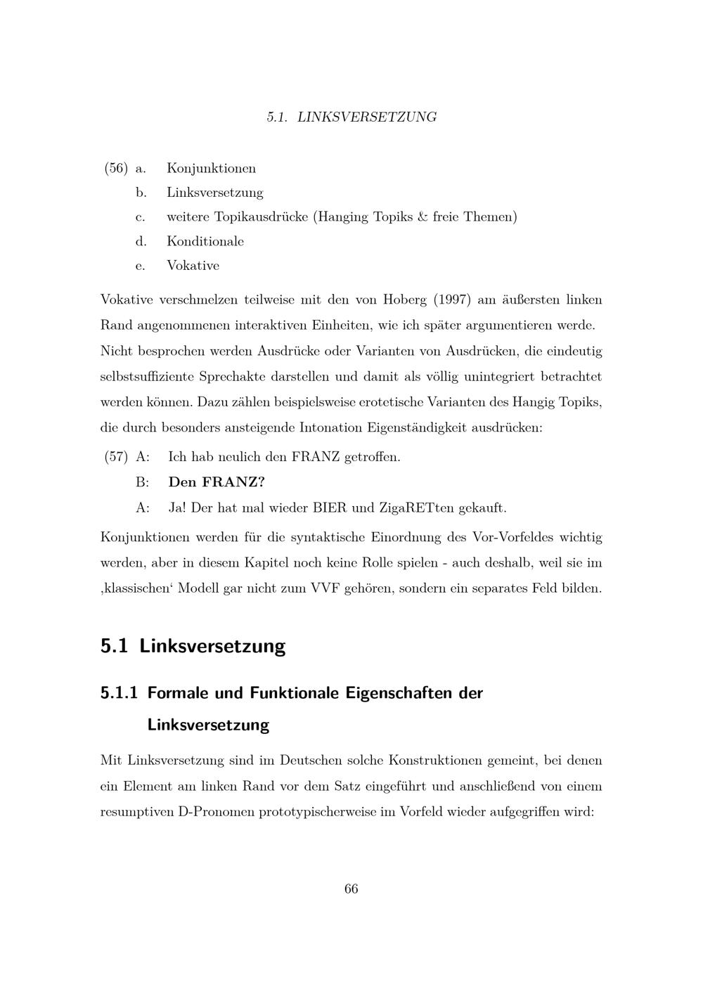 Formale und Funktionale Eigenschaften der Linksversetzung