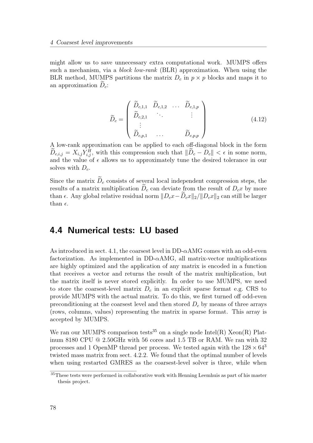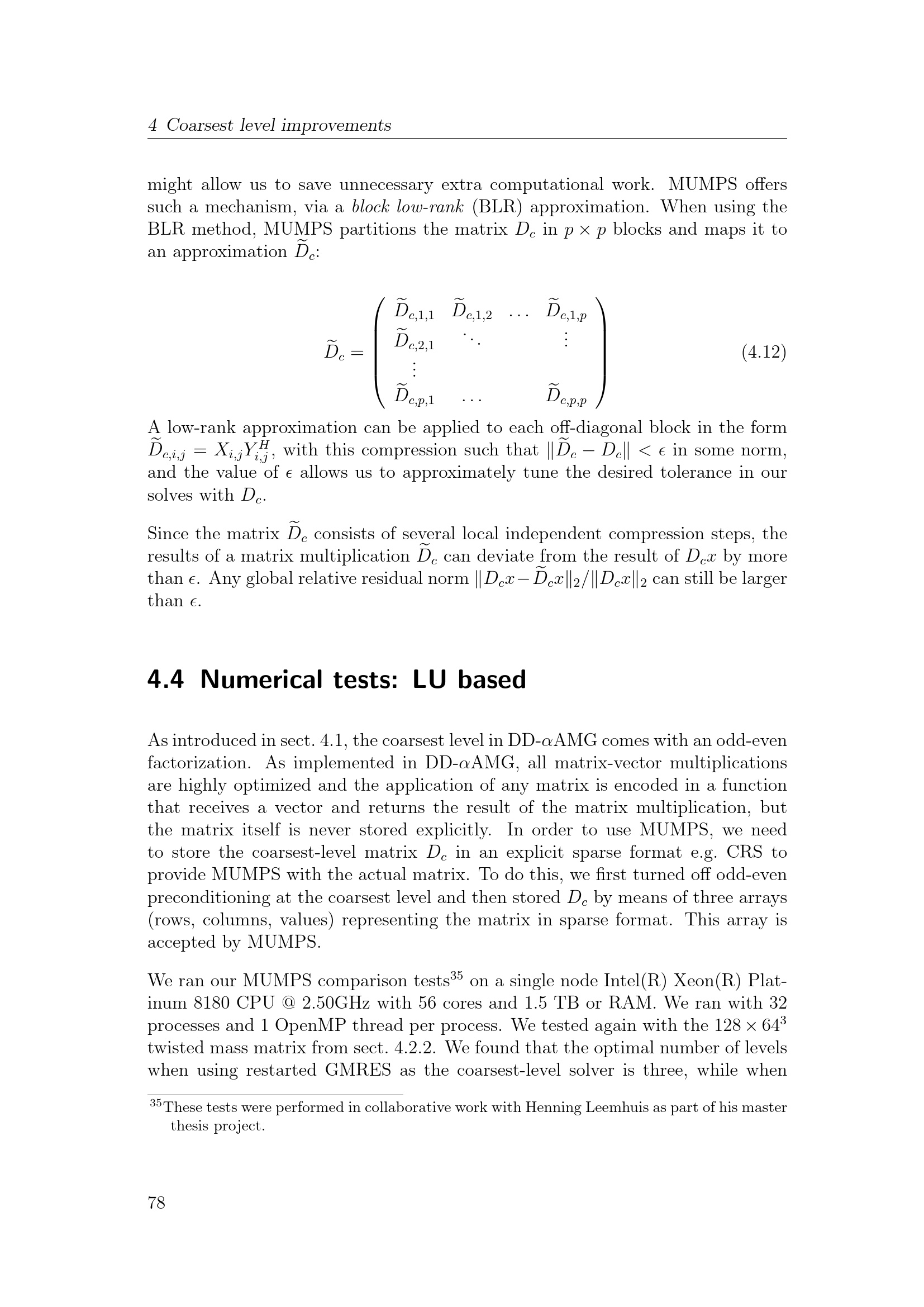 Numerical tests: LU based
