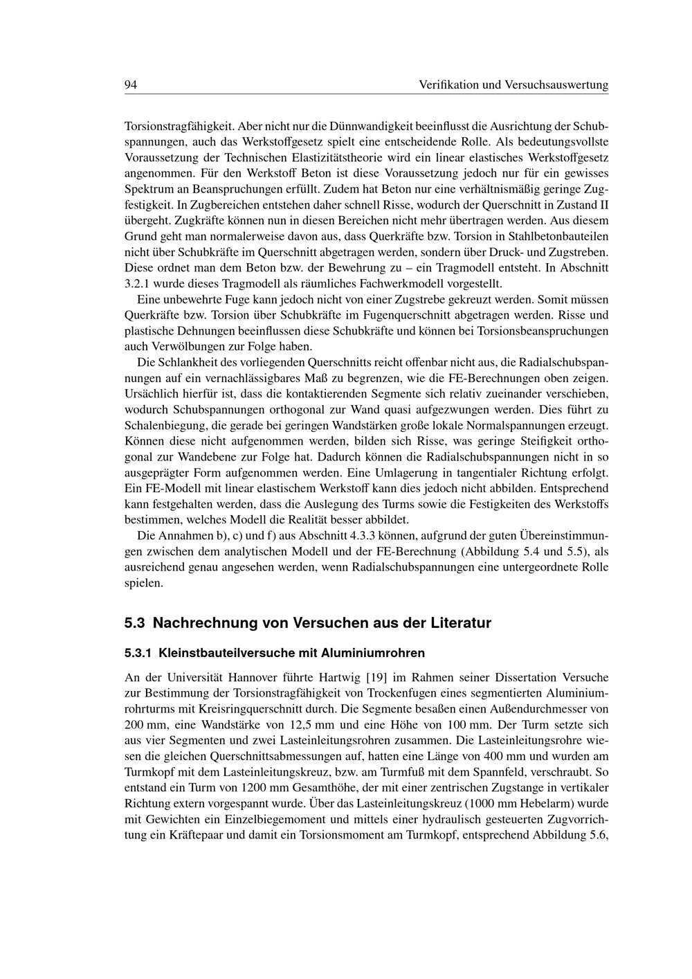 Zum Torsionstragverhalten vorgespannter Segmenttürme : ein Nachweismodell für überdrückte und klaffende Segmentfugen mit Kreisringquerschnitt / vorgelegt von Lutz Loh