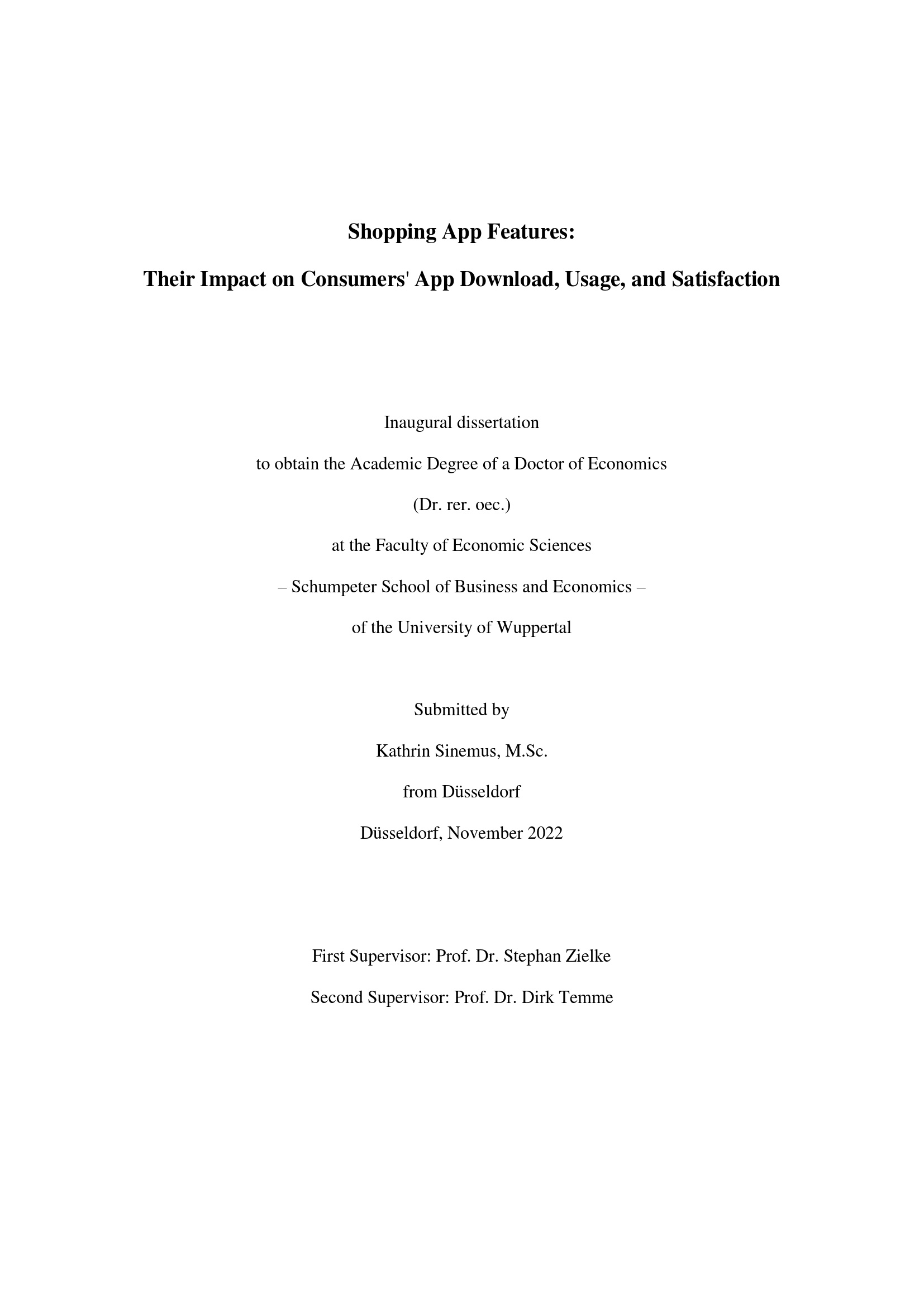 Shopping App Features: their impact on consumers' App download, usage, and satisfaction / submitted by Kathrin Sinemus, M. Sc.