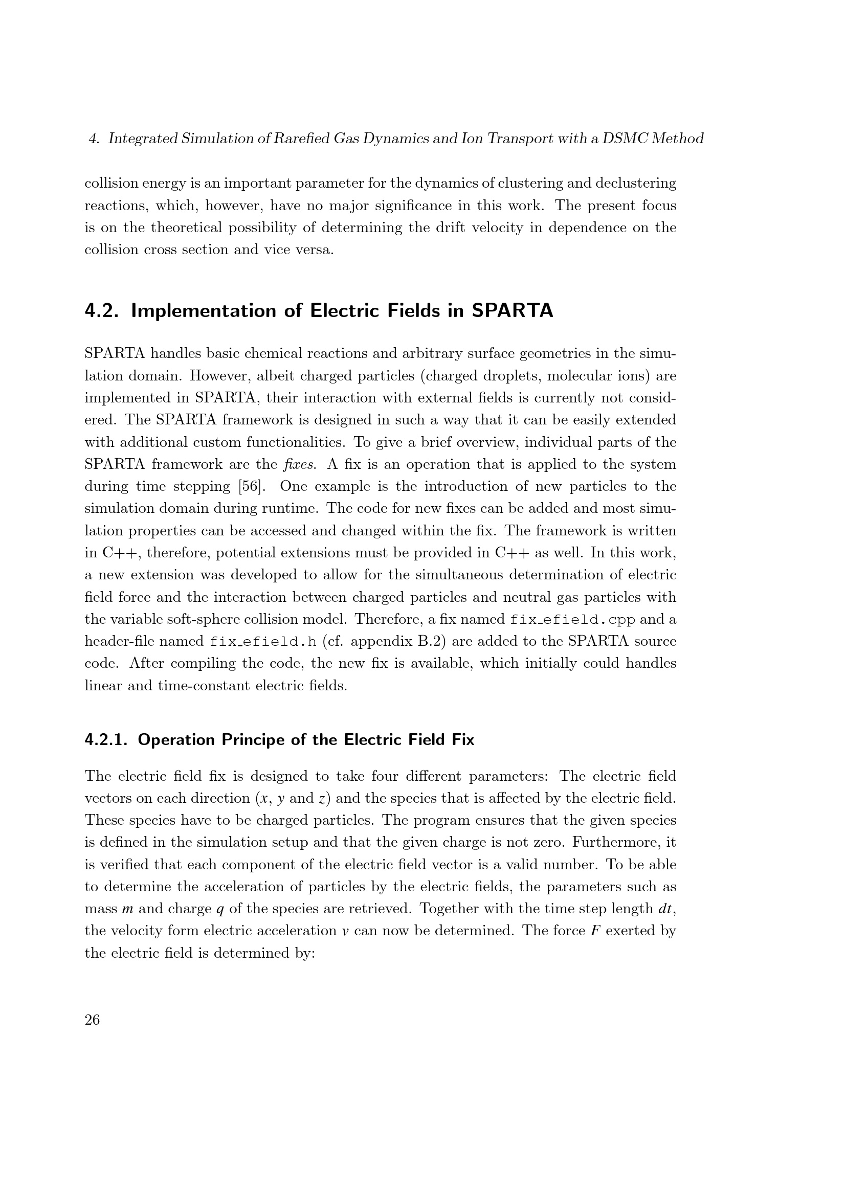 Implementation of Electric Fields in SPARTA