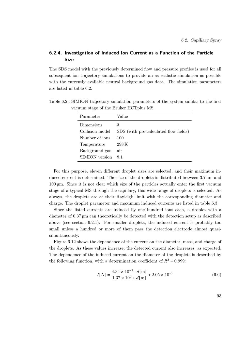 Investigation of Induced Ion Current as a Function of the Particle Size