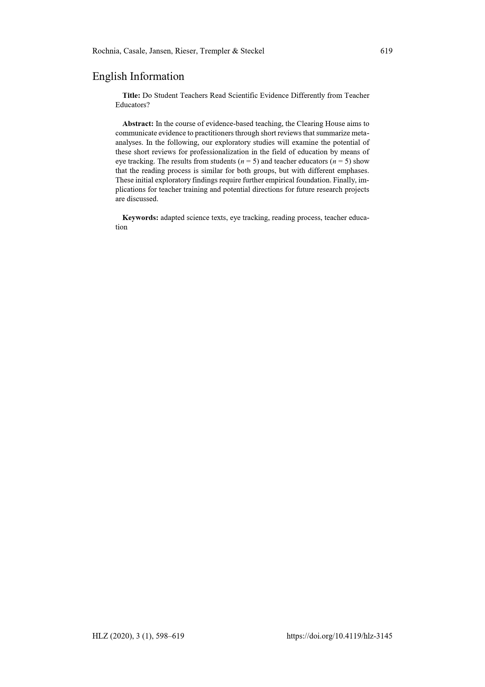 Evidenzorientierte Praxis im Bildungsbereich: vier empirische Studien zu einem integrativen Modell / vorgelegt von: Michael Rochnia