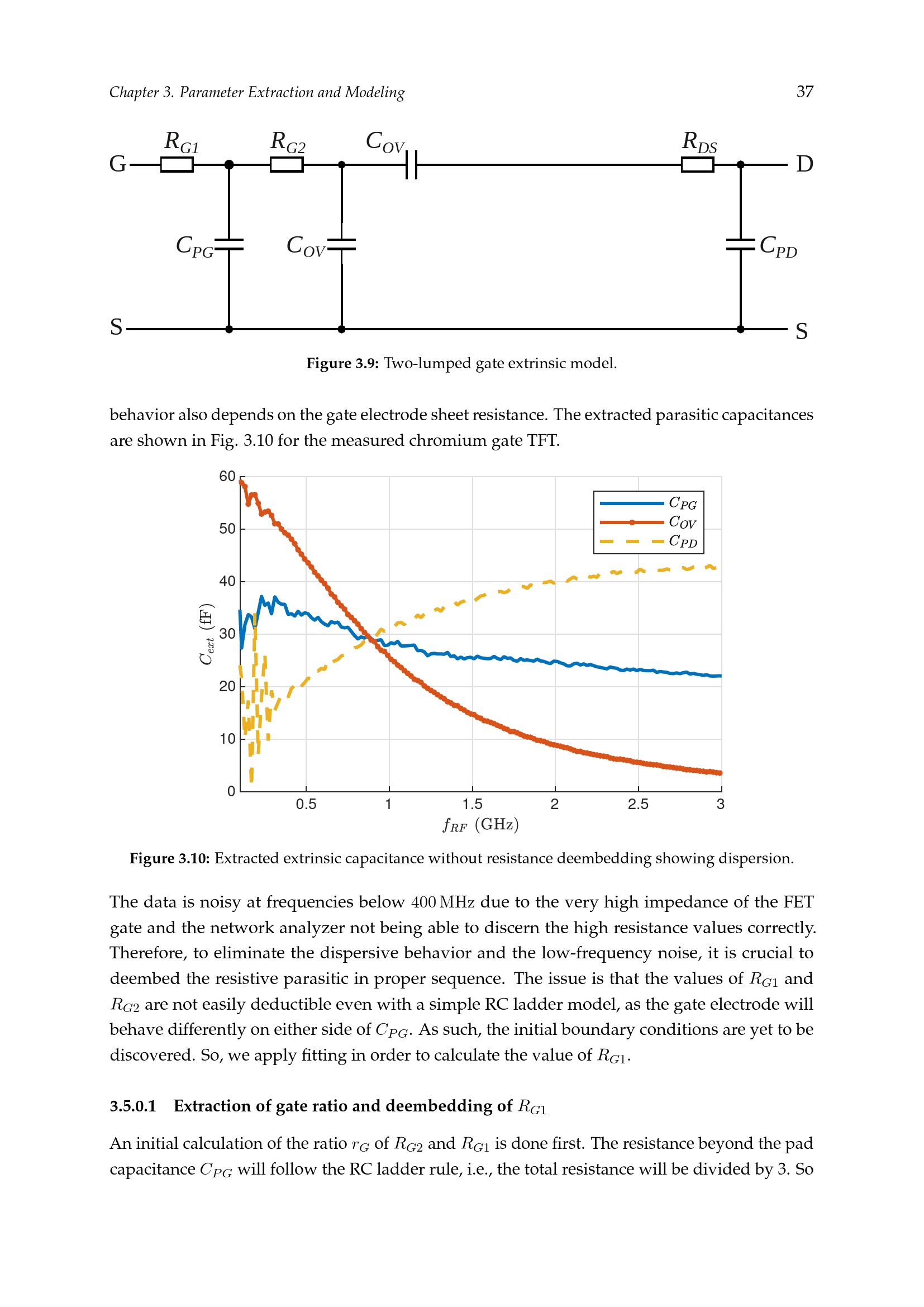 Extraction of gate ratio and deembedding of R_G1