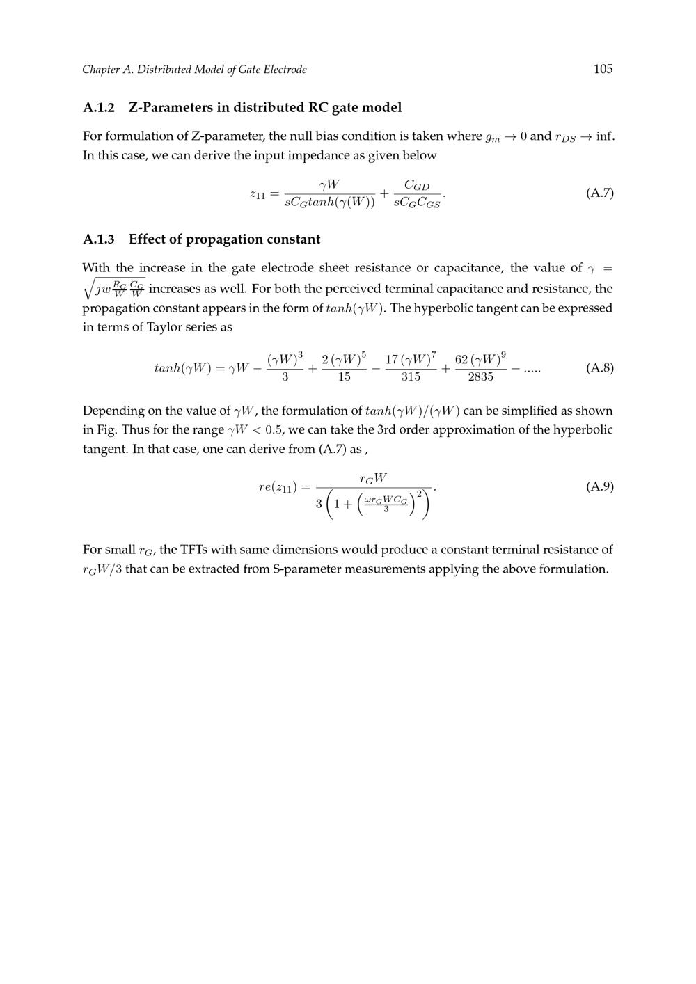 Z-Parameters in distributed RC gate model