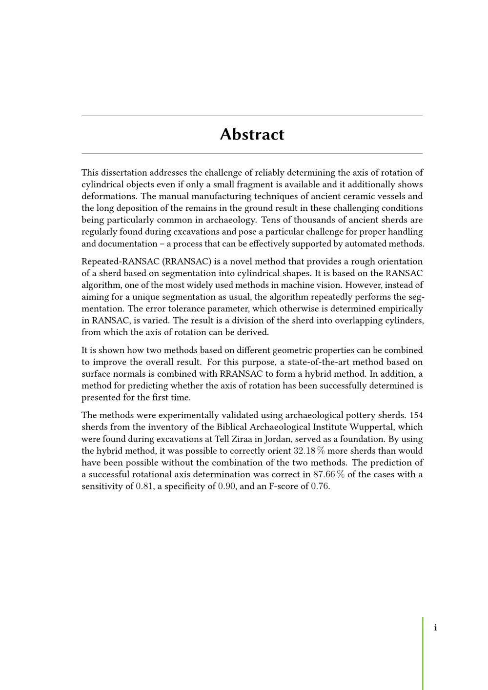 Ein hybrider Ansatz zur Bestimmung der Rotationsachse von Fragmenten zylindrischer Gefäße, insbesondere archäologischer Keramikgefäße / eingereicht durch Dipl.-Math. Bernard Beitz