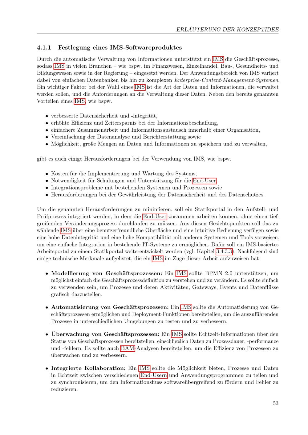 Festlegung eines IMS-Softwareproduktes