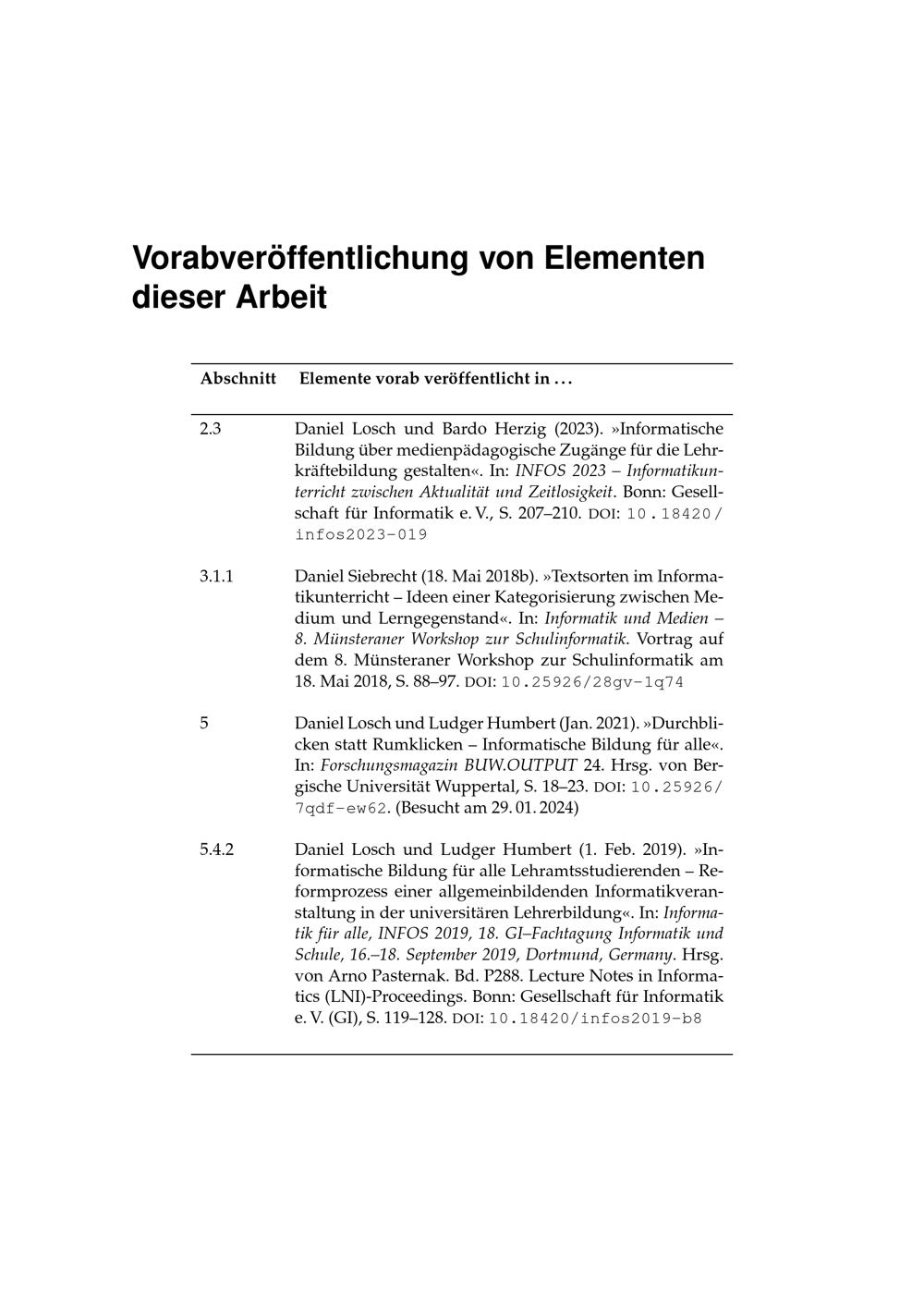 Vorabveröffentlichung von Elementen dieser Arbeit