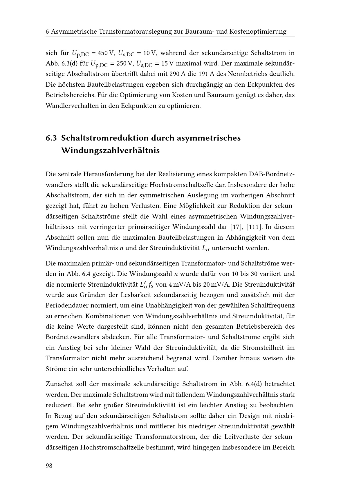 6 Asymmetrische Transformatorauslegung zur Bauraum- und Kostenoptimierung
