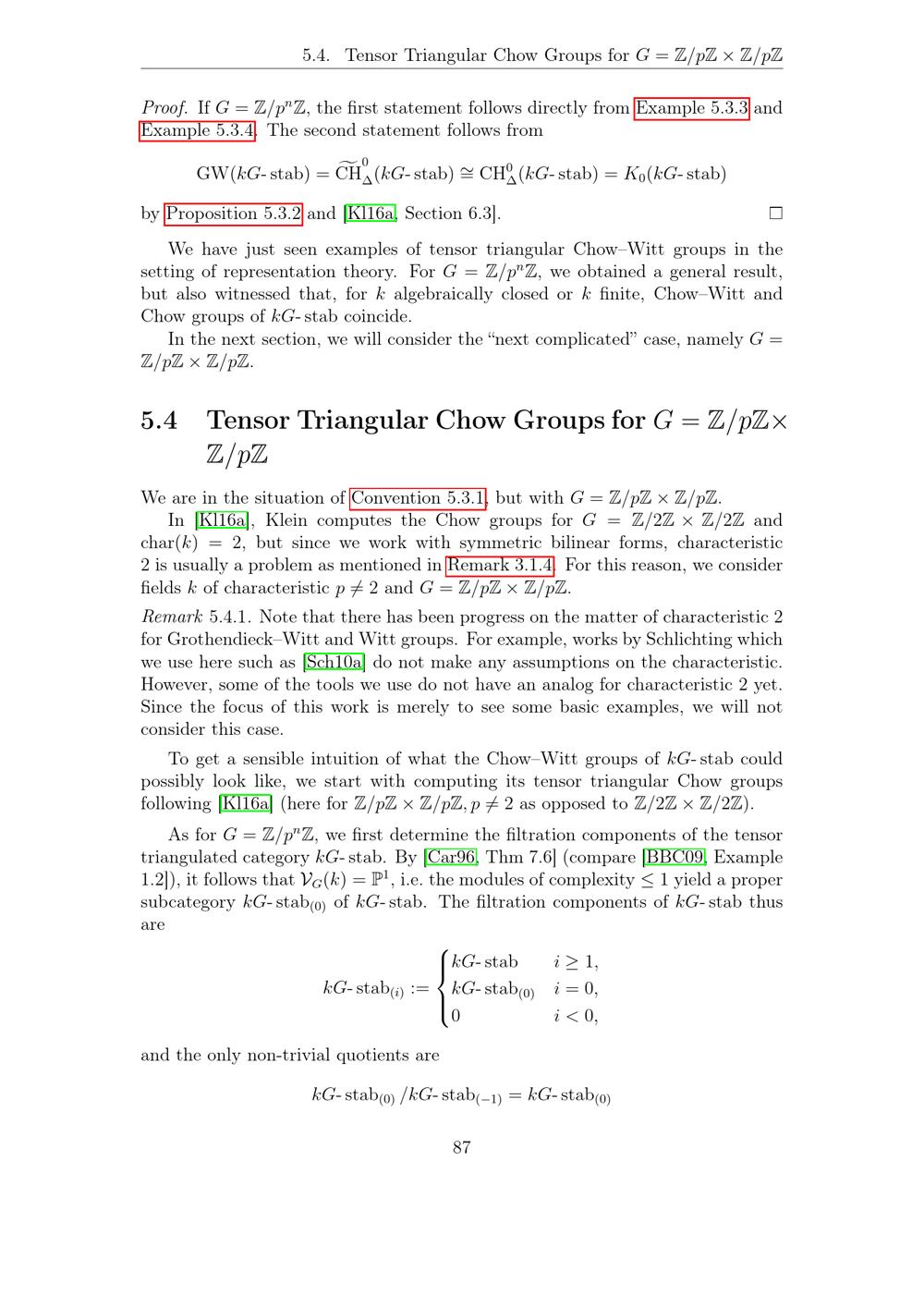 Tensor Triangular Chow Groups for G=Z/pZZ/pZ