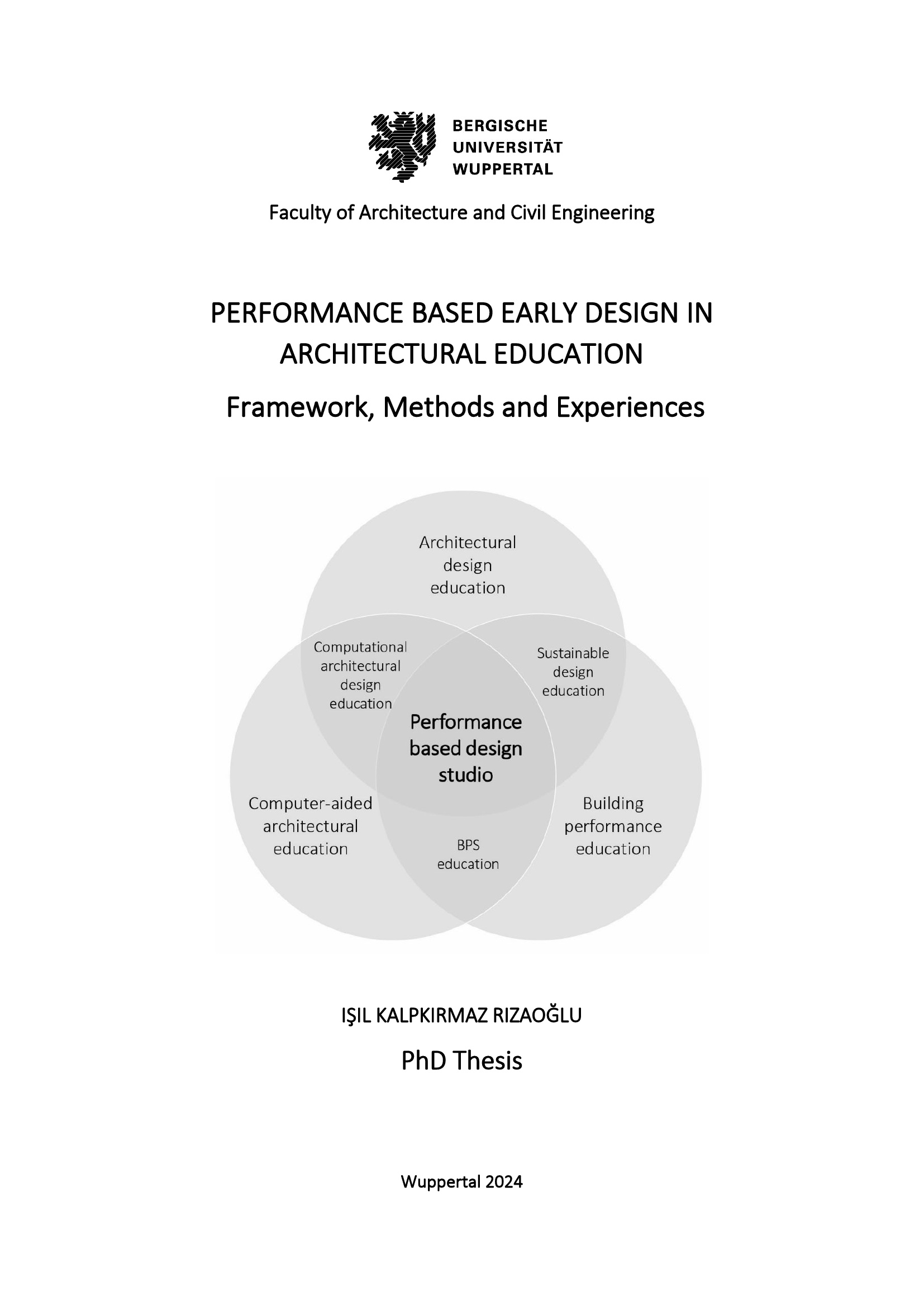 Performance based early design in architectural education : framework, methods and experiences / by Işıl Kalpkırmaz Rızaoğlu