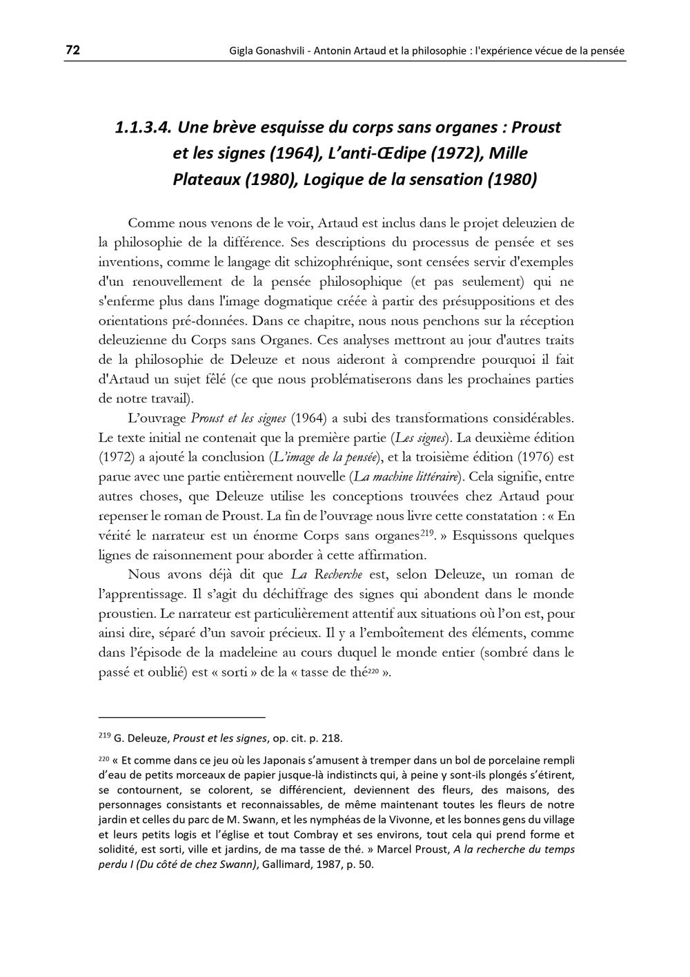 1.1.3.4. Une brève esquisse du corps sans organes : Proust et les signes (1964),[...]