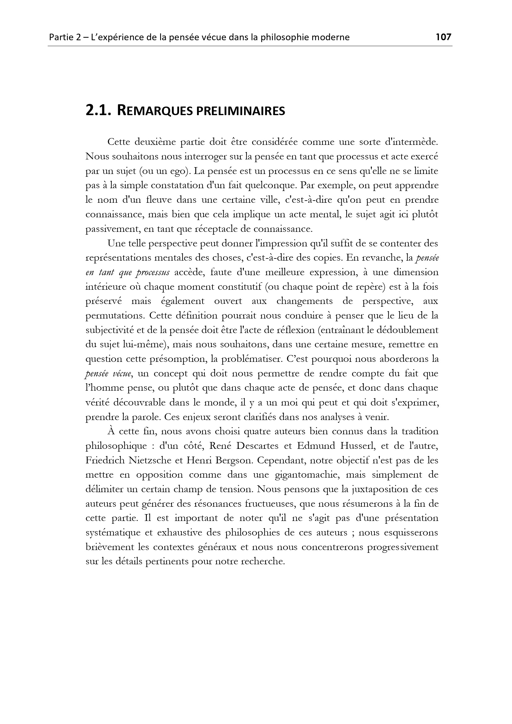 2. L’experience vecue de la pensee dans la philosophie moderne