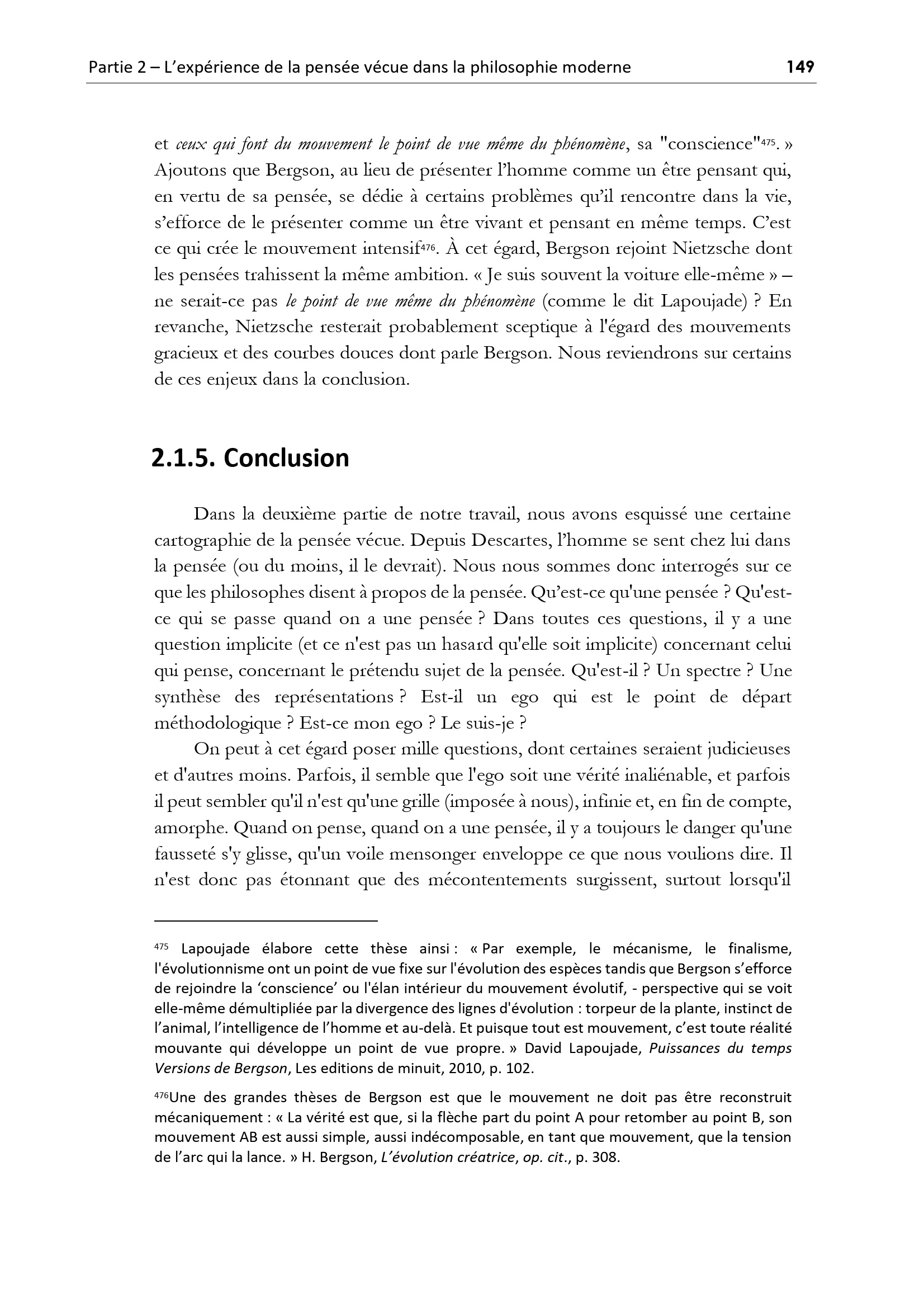 2. L’experience vecue de la pensee dans la philosophie moderne
