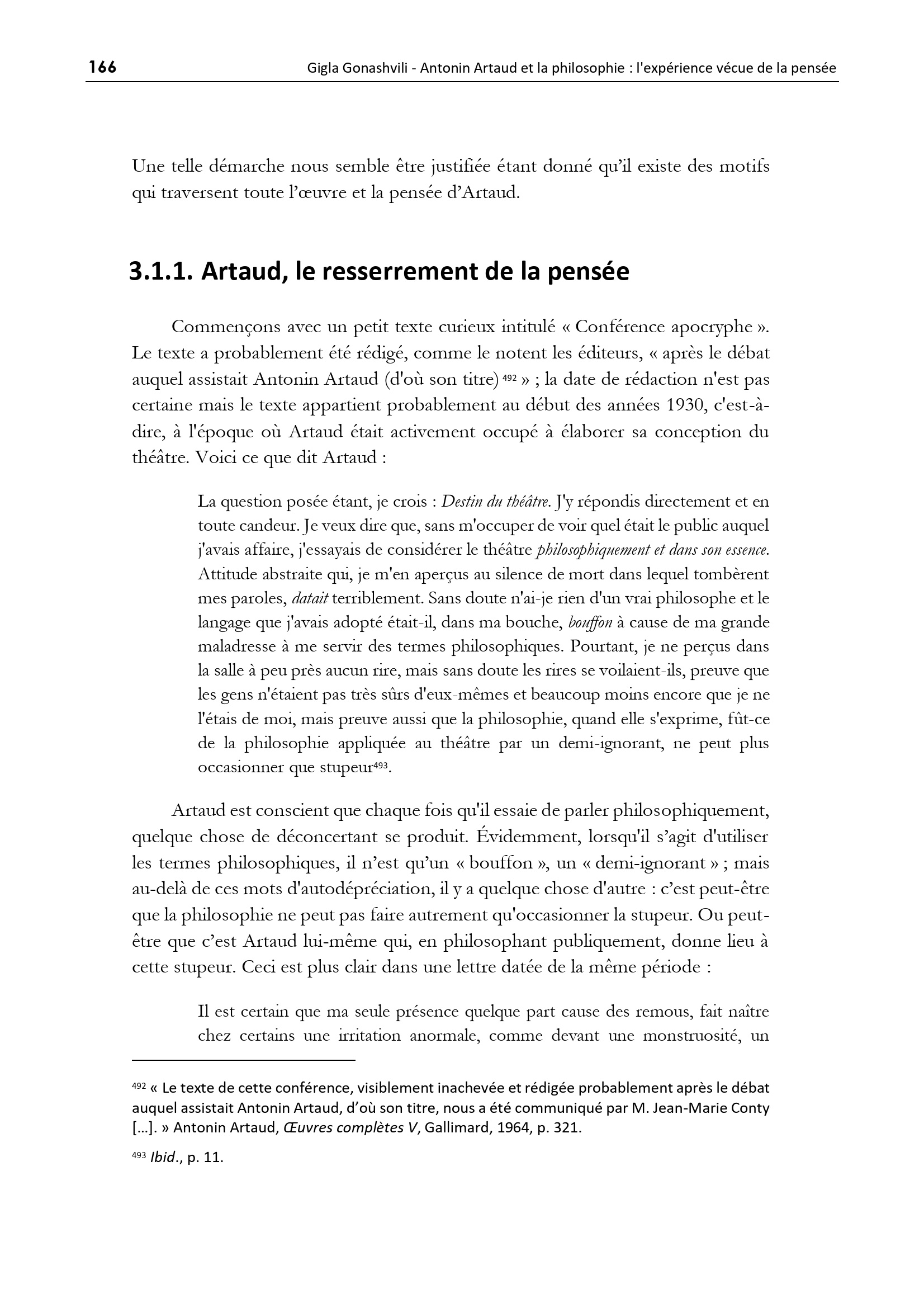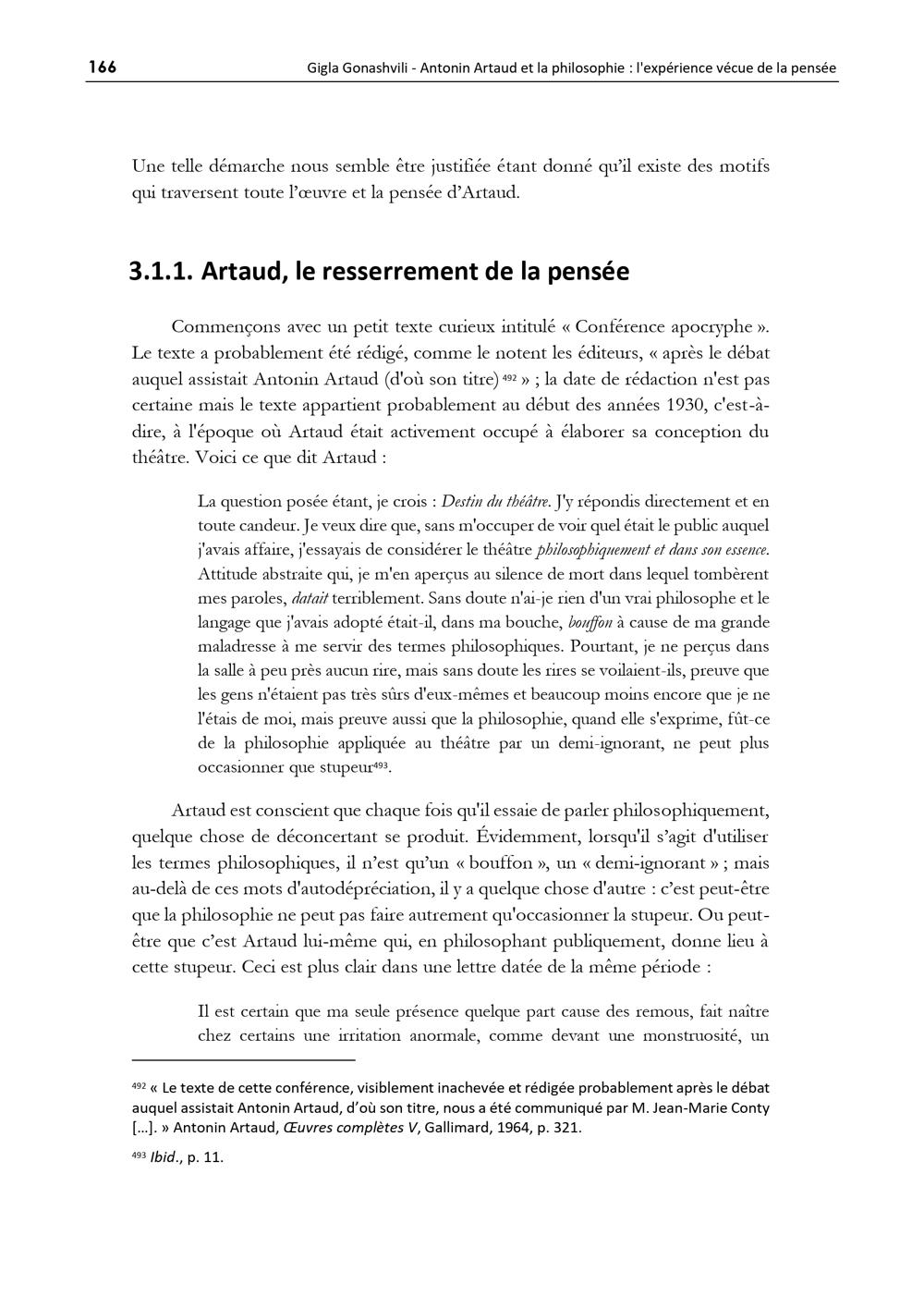 Antonin Artaud et la philosophie : l'expérience vécue de la pensée / Gigla Gonashvilli