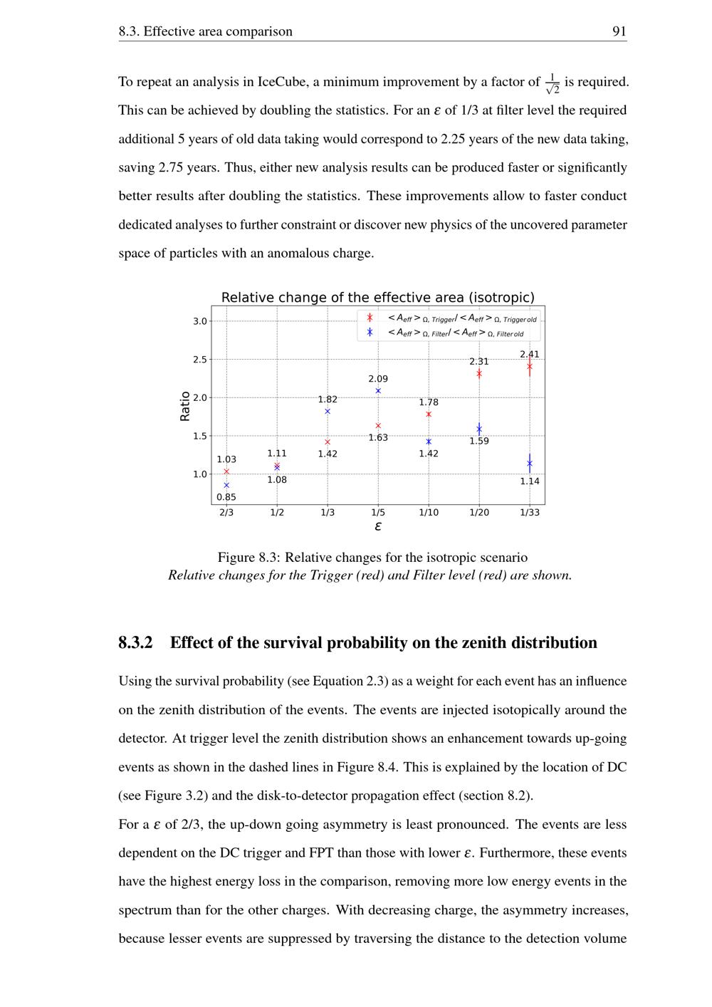 Effect of the survival probability on the zenith distribution