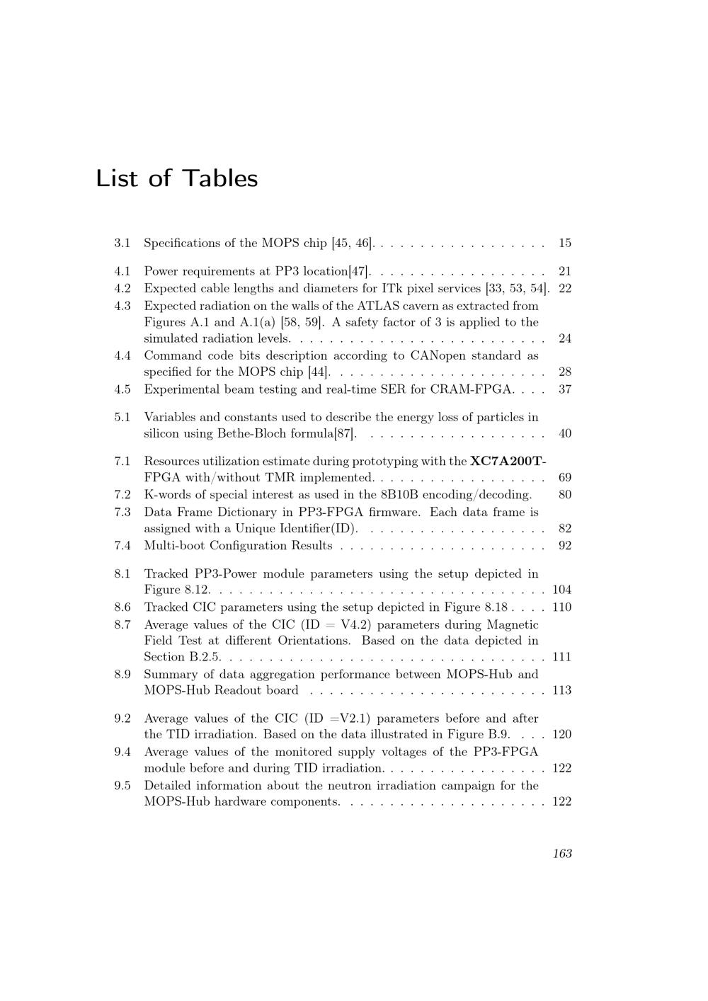 List of Tables