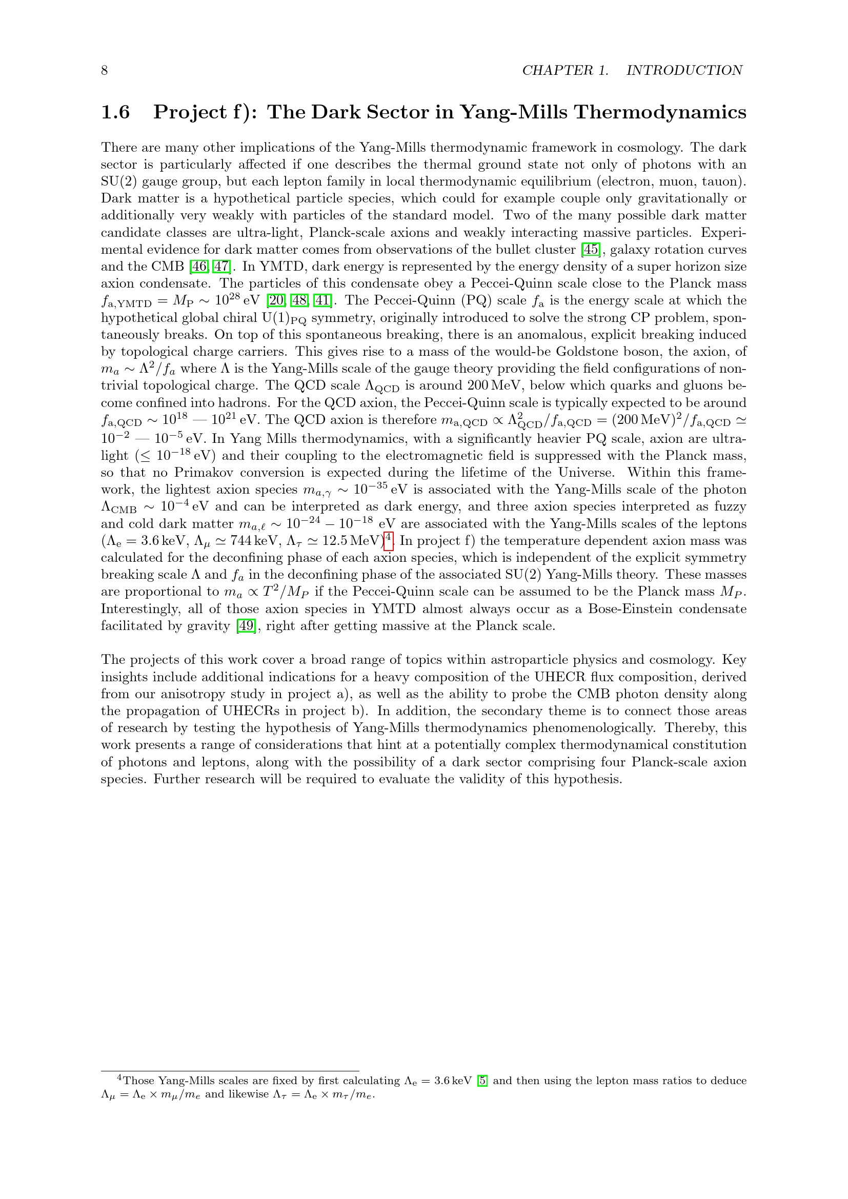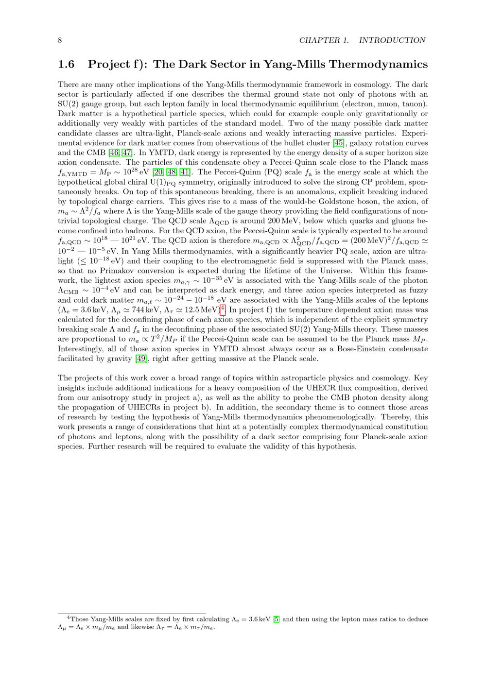 Project f): The Dark Sector in Yang-Mills Thermodynamics
