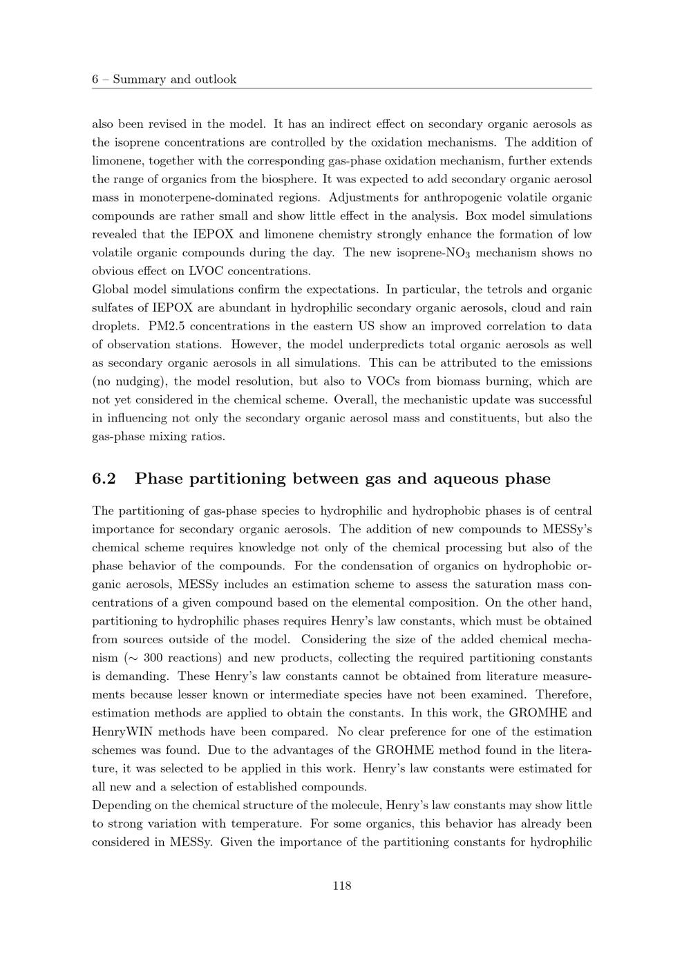 Phase partitioning between gas and aqueous phase