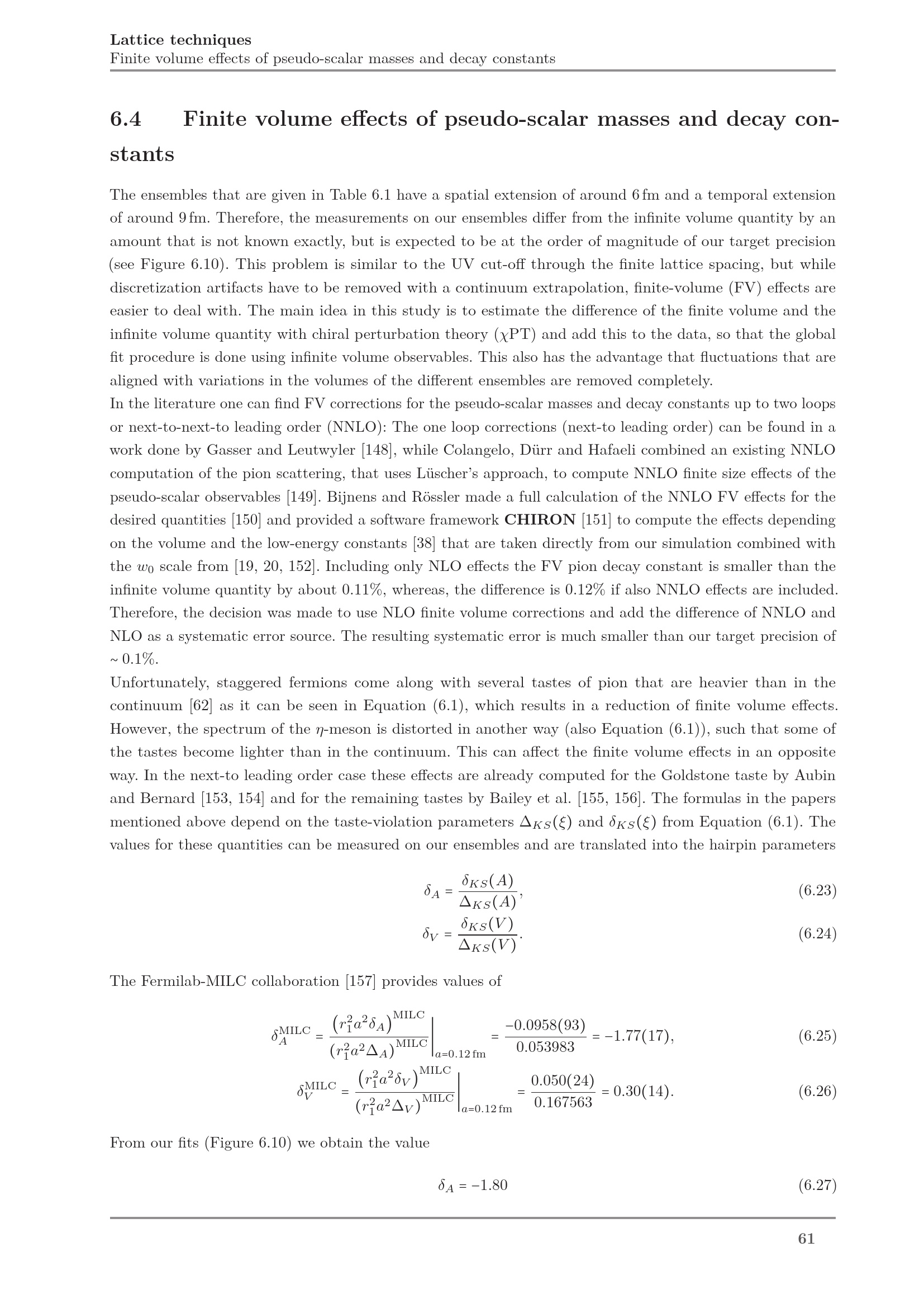6.4 Finite volume effects of pseudo-scalar masses and decay constants