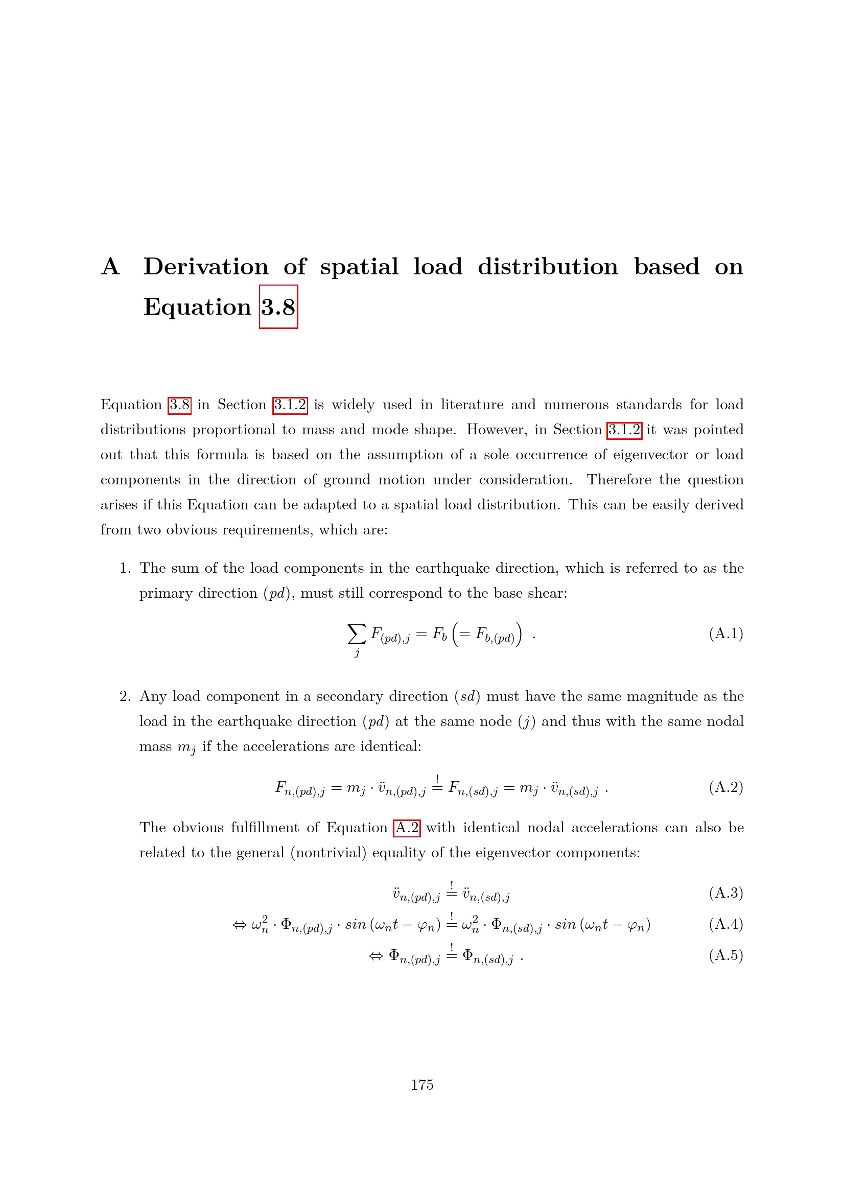 Derivation of spatial load distribution based on Equation 3.8