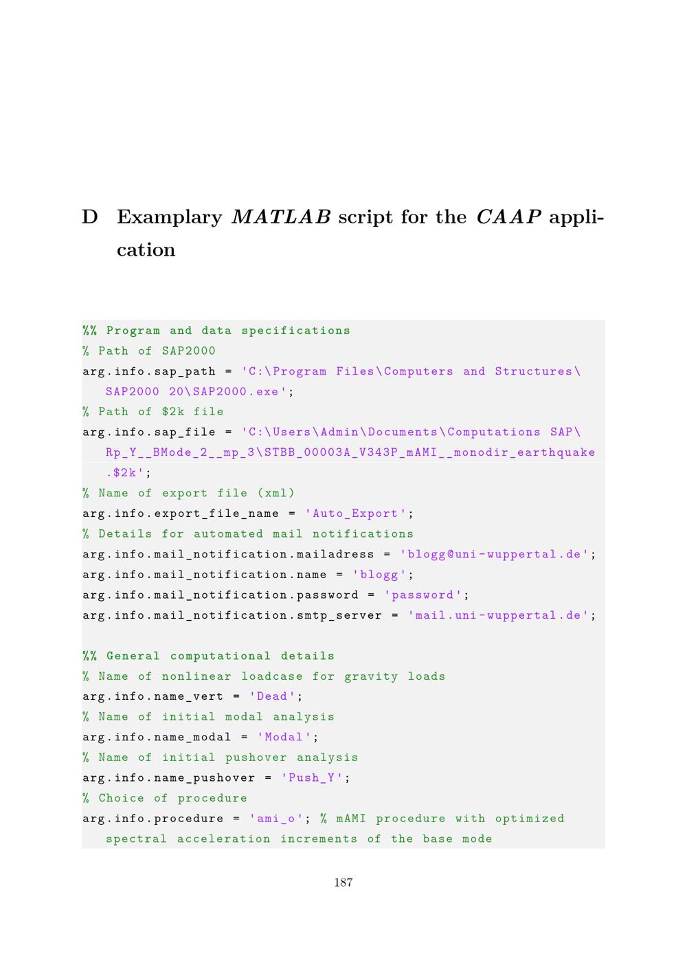 Examplary MATLAB script for the CAAP application