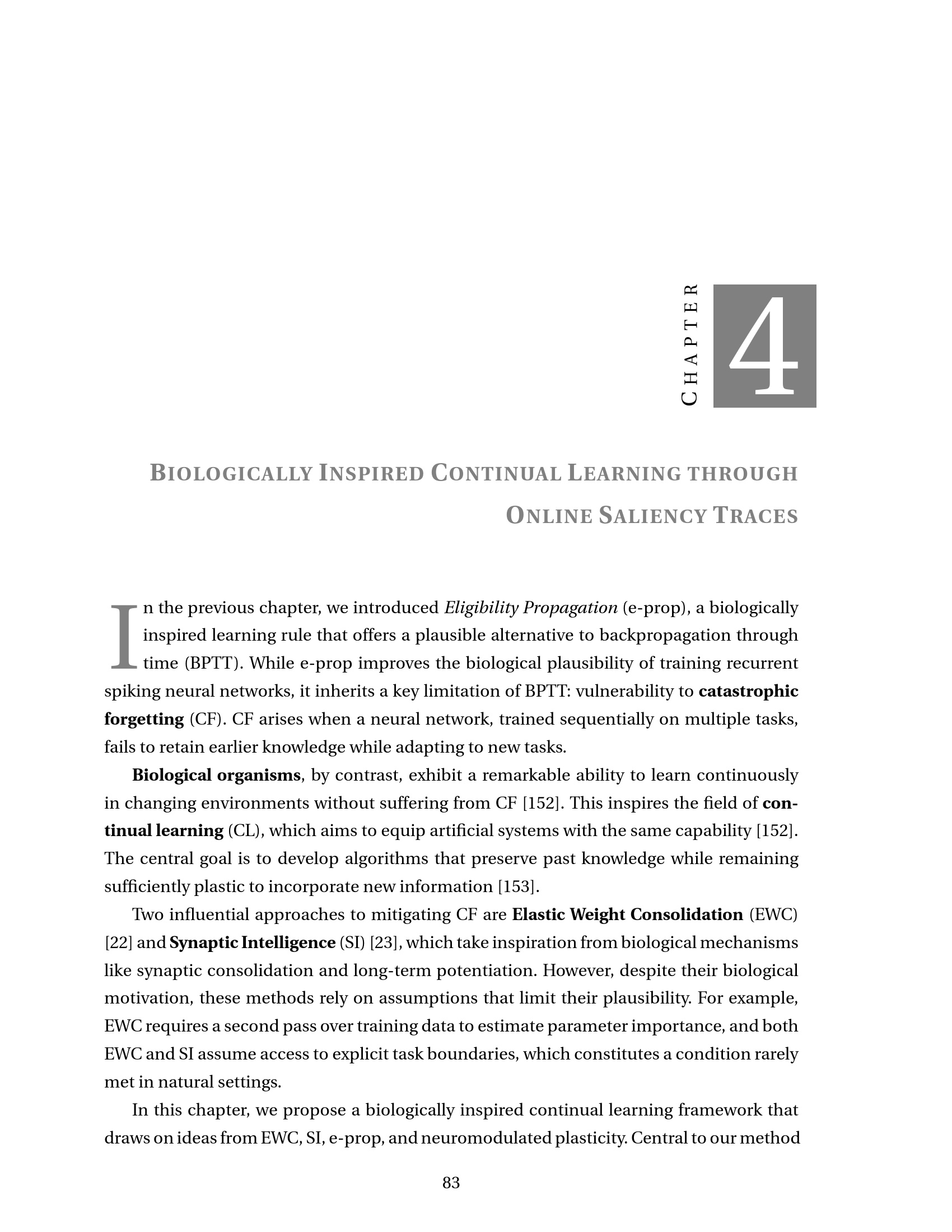 Biologically Inspired Continual Learning through Online Saliency Traces