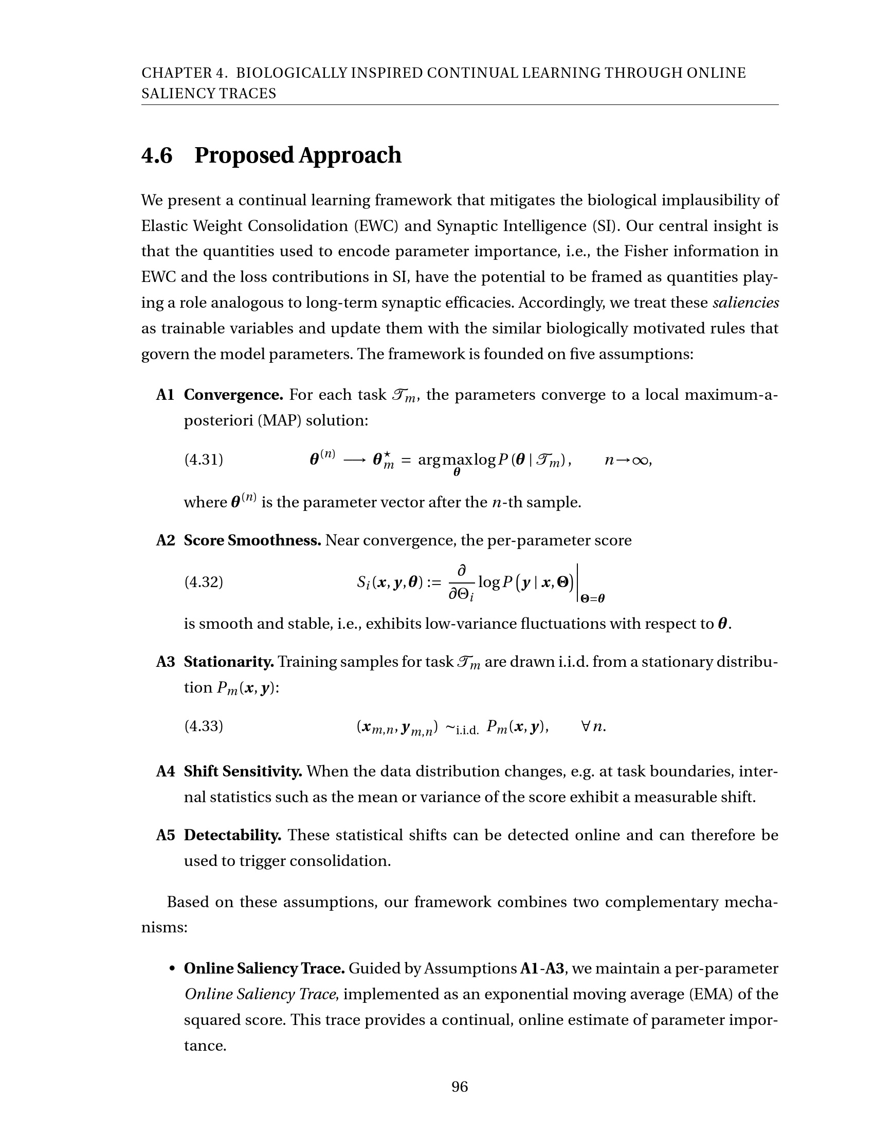 Biologically Inspired Continual Learning through Online Saliency Traces