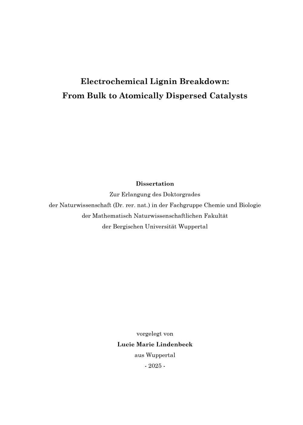 Electrochemical lignin breakdown: From bulk to atomically dispersed catalysts / vorgelegt von Lucie Marie Lindenbeck