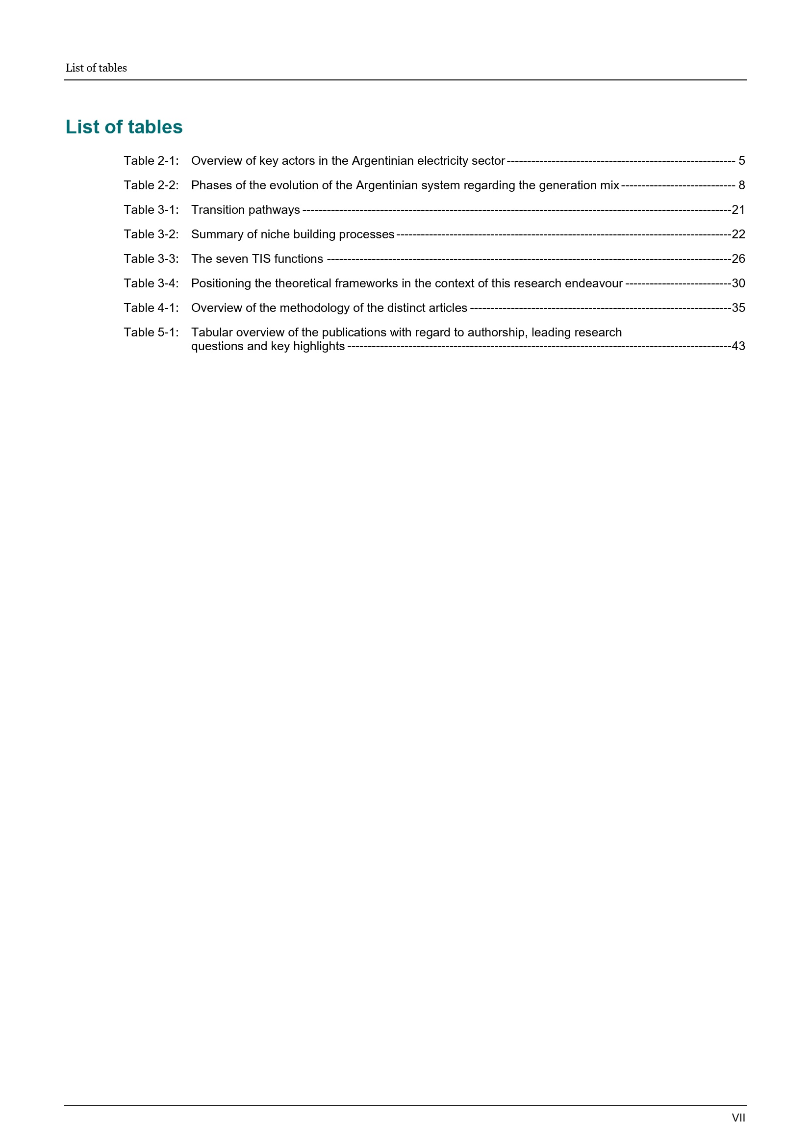 List of tables